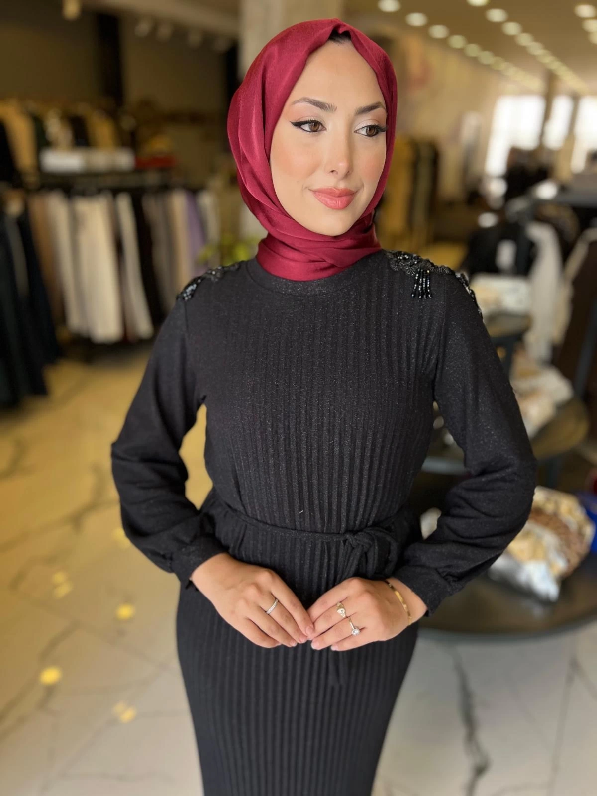 Merihce Luxury kalitesini her detayda hissedeceğiniz MY312-OMUZ İŞLEMELİ PİLİSELİ ELBİSE SİYAH, gardırobunuzun vazgeçilmezlerinden biri olmaya aday.