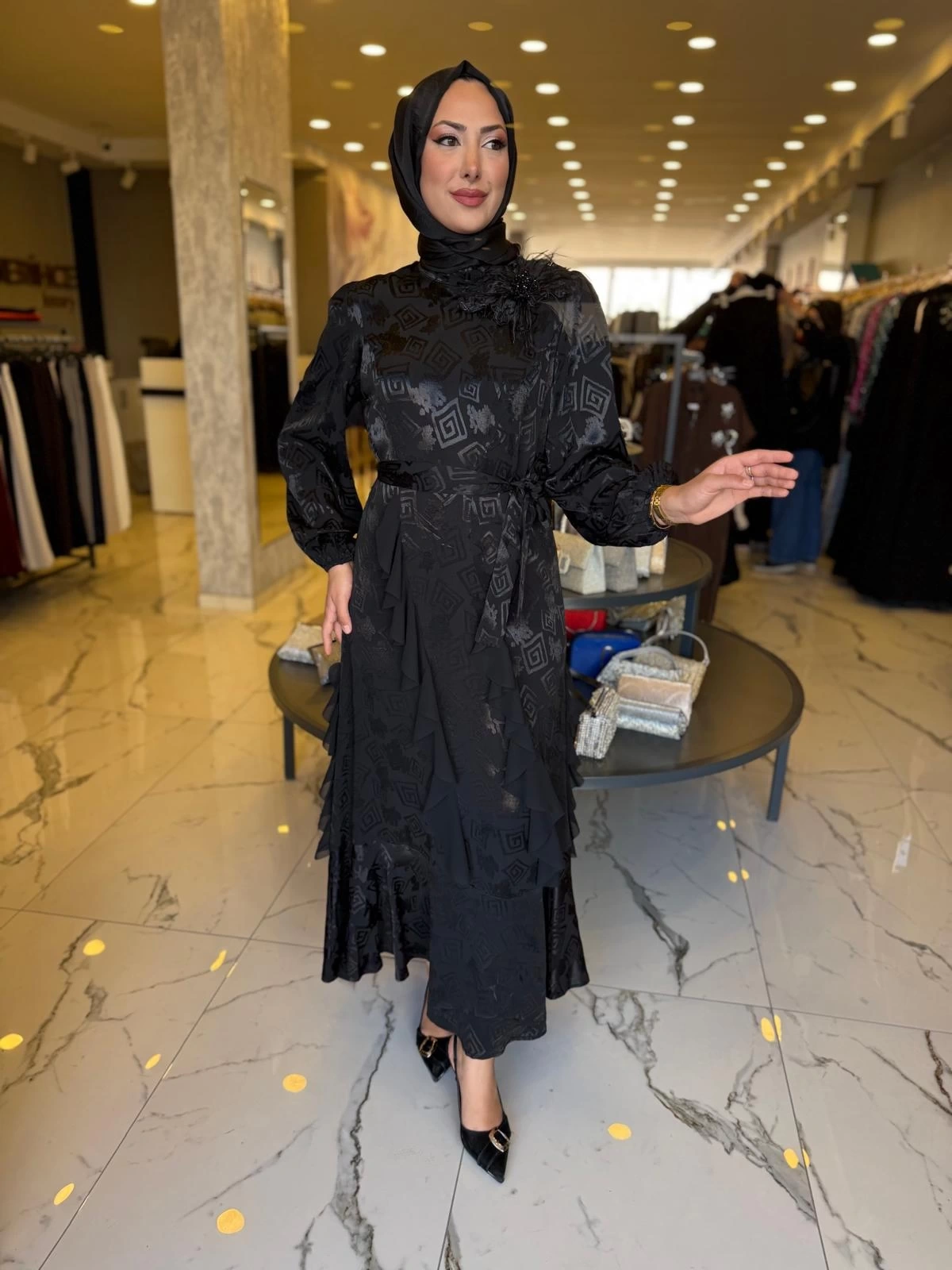 Merihce Luxury kalitesini her detayda hissedeceğiniz MY312-OMUZU İŞLEMELİ JAKAR ELBİSE SİYAH, gardırobunuzun vazgeçilmezlerinden biri olmaya aday.