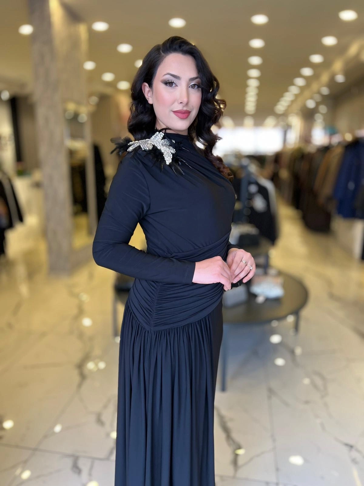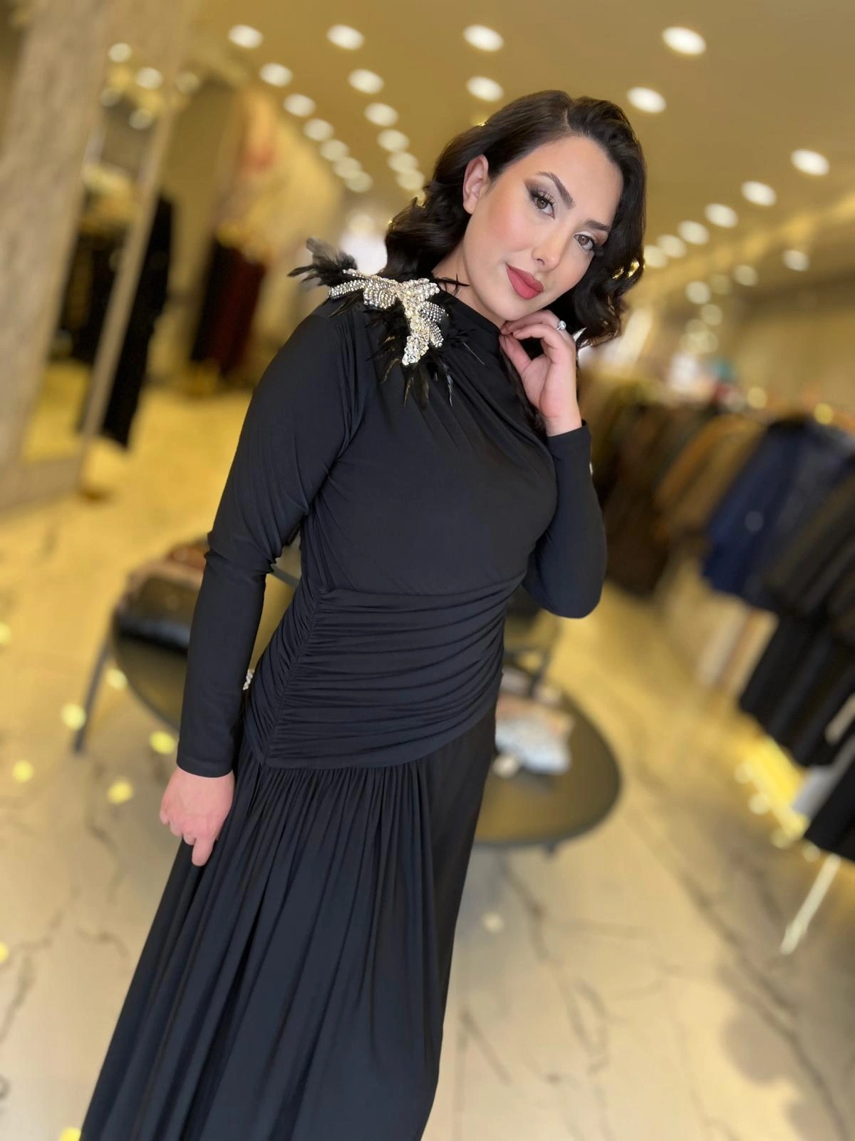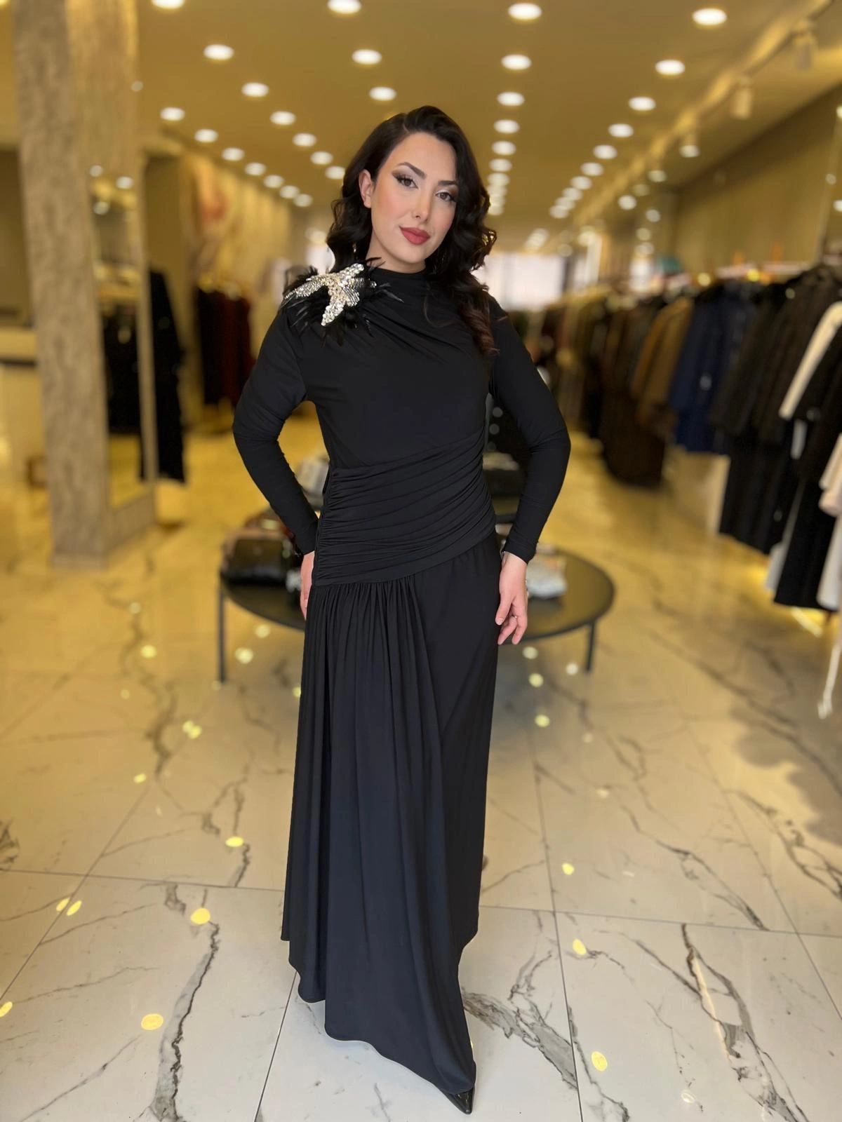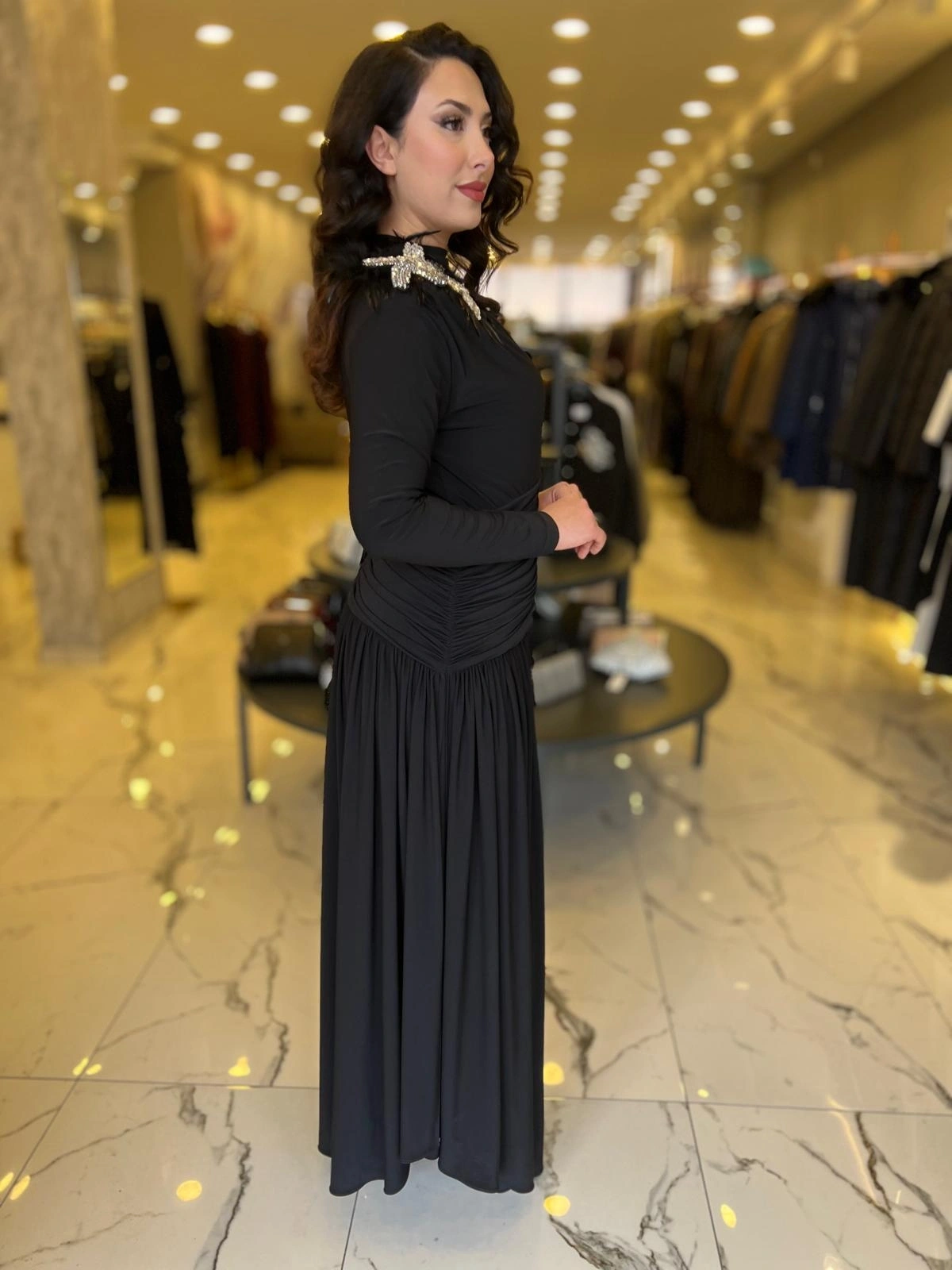 Merihce Luxury kalitesini her detayda hissedeceğiniz MY312-OMUZU TAŞLI ELBİSE SİYAH, gardırobunuzun vazgeçilmezlerinden biri olmaya aday.