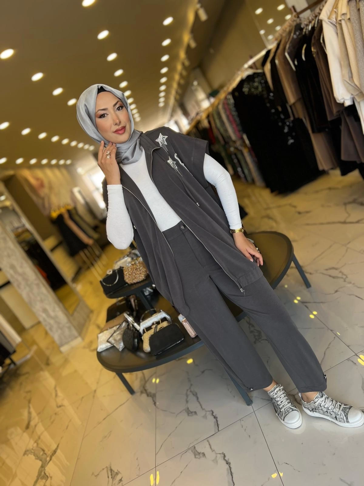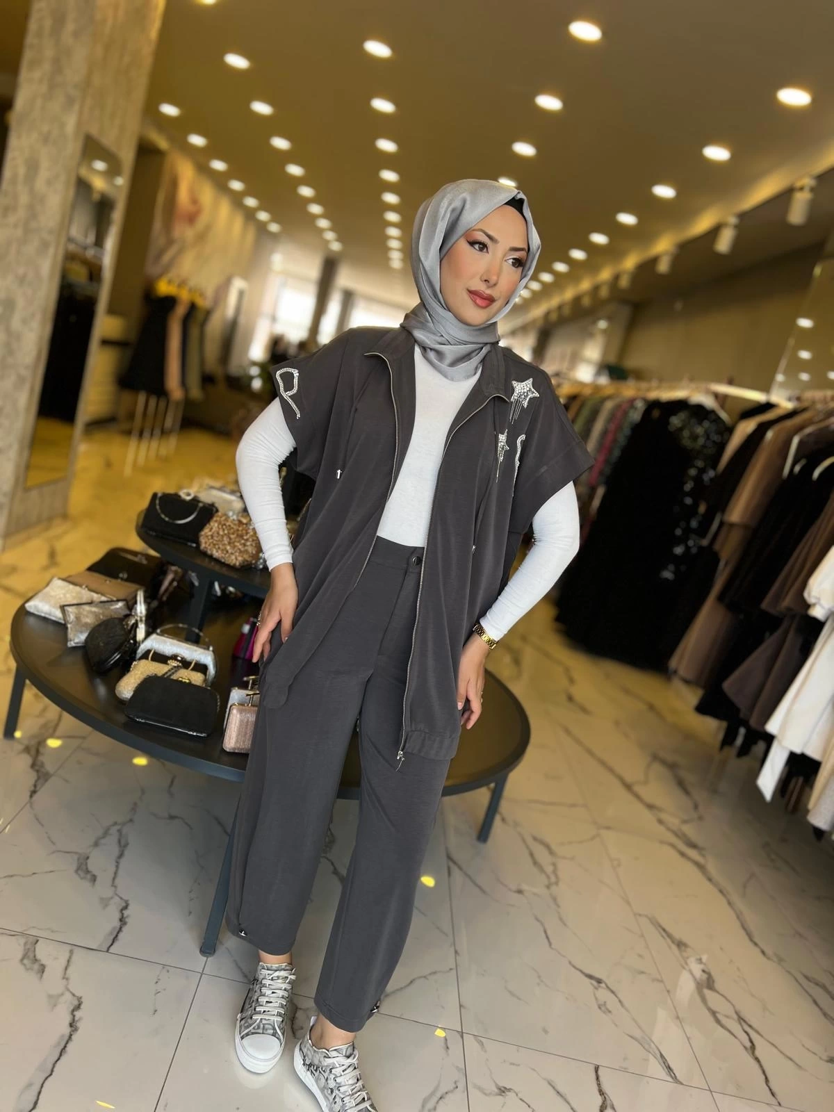 Merihce Luxury kalitesini her detayda hissedeceğiniz MY312-OMZU TAŞLI TAKIM ANTRASİT, gardırobunuzun vazgeçilmezlerinden biri olmaya aday.
