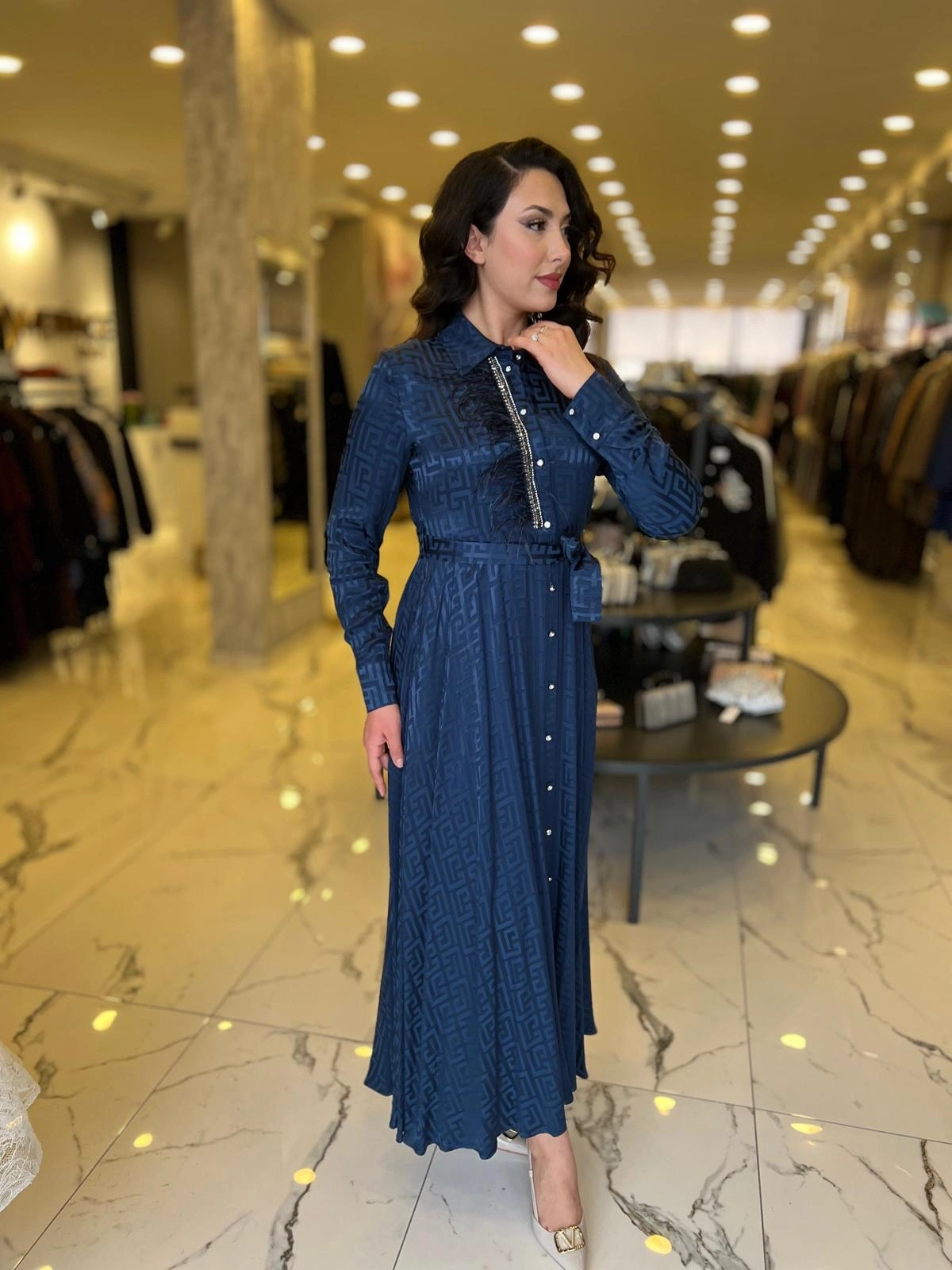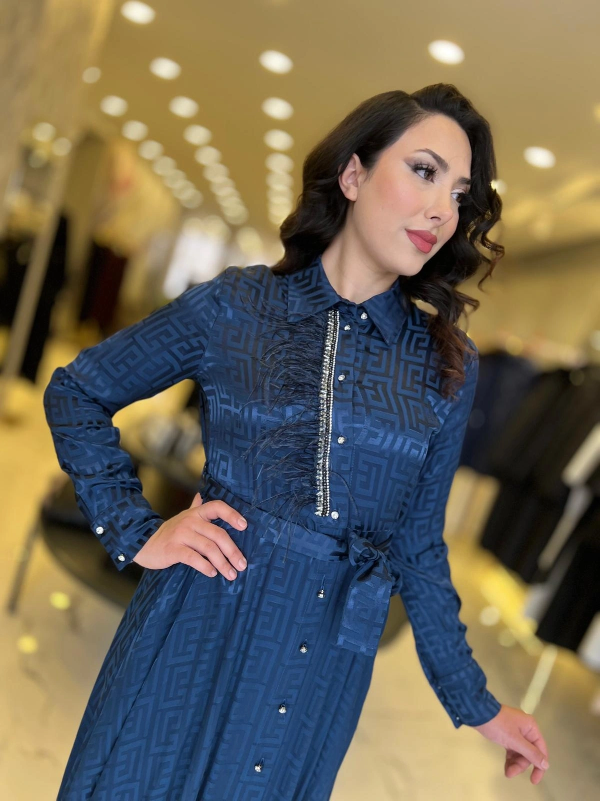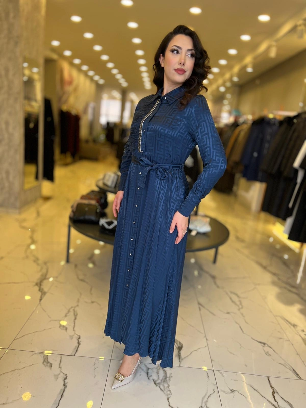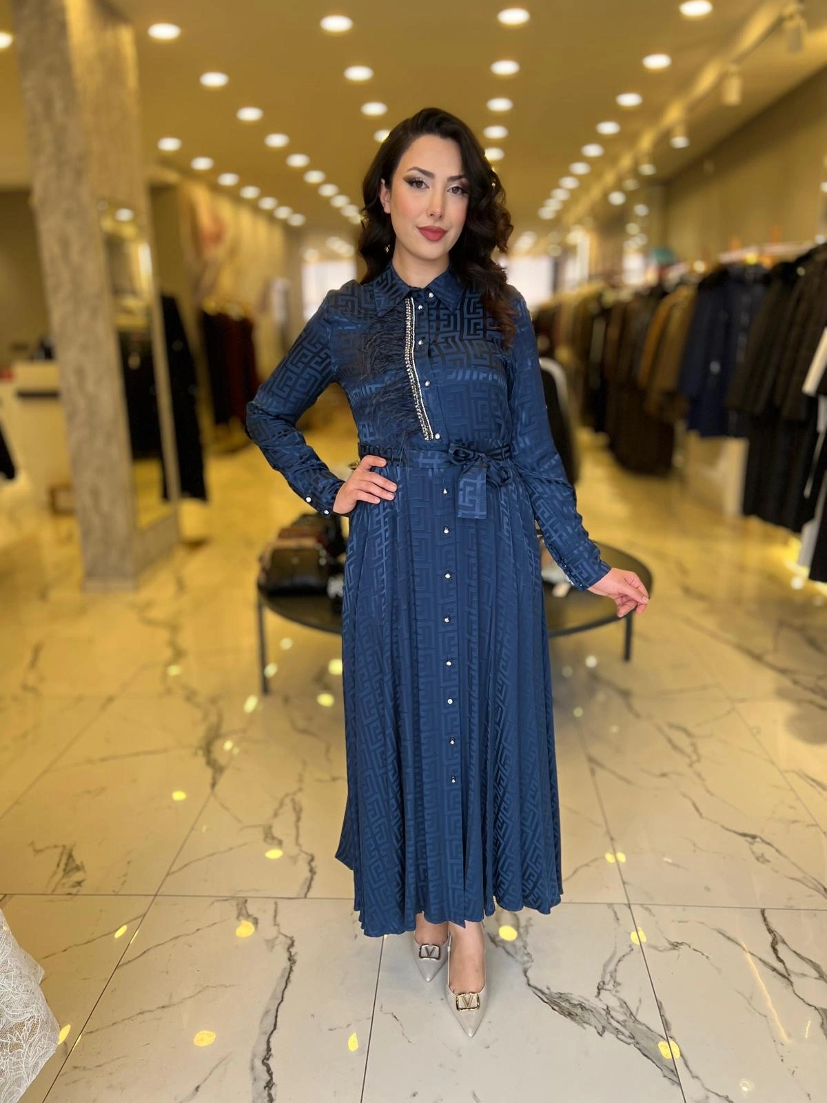 Merihce Luxury kalitesini her detayda hissedeceğiniz MY312-ÖNÜ TAŞLI JAKAR ELBİSE LACİVERT, gardırobunuzun vazgeçilmezlerinden biri olmaya aday.