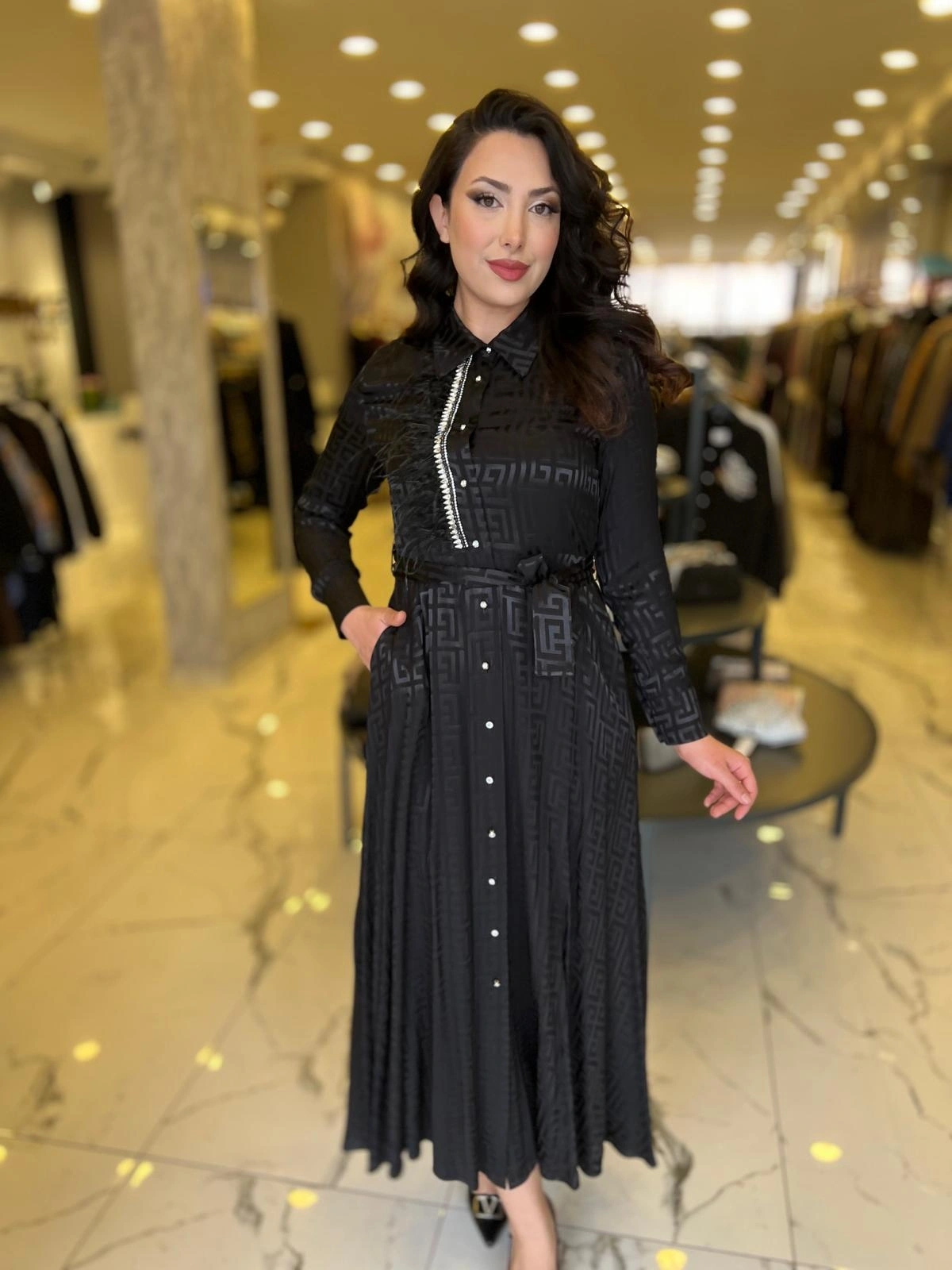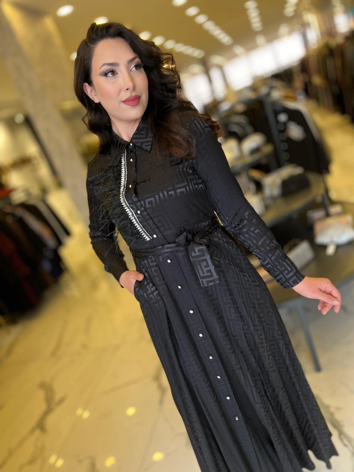 Merihce Luxury kalitesini her detayda hissedeceğiniz MY312-ÖNÜ TAŞLI JAKAR ELBİSE SİYAH, gardırobunuzun vazgeçilmezlerinden biri olmaya aday.