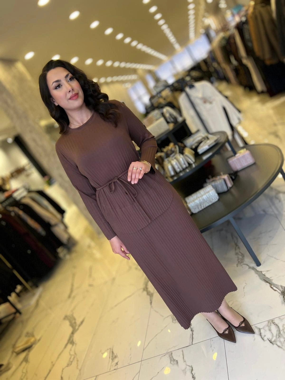 Merihce Luxury kalitesini her detayda hissedeceğiniz MY312-PLİSELİ ELBİSE KAHVE, gardırobunuzun vazgeçilmezlerinden biri olmaya aday.
