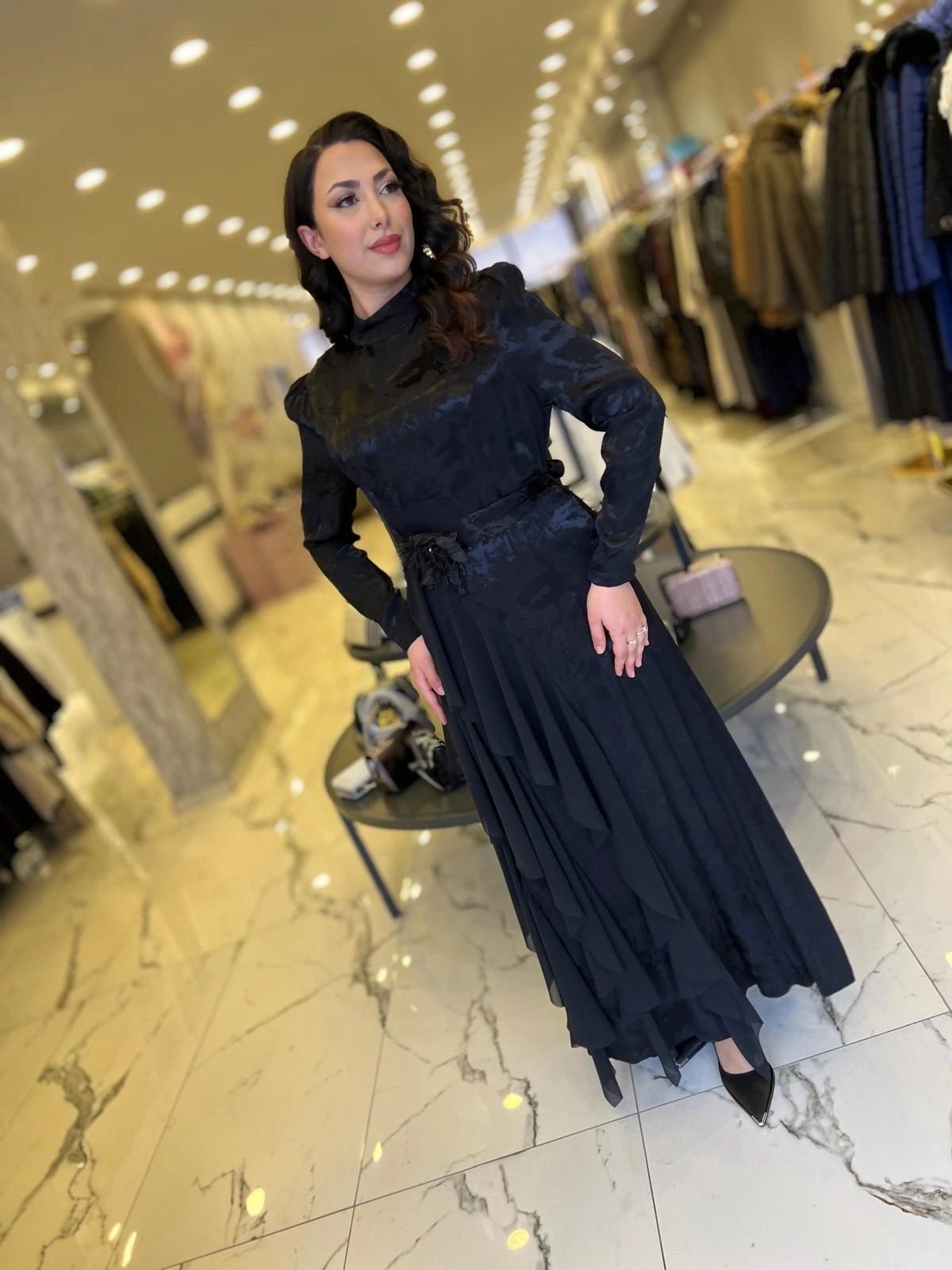 Merihce Luxury kalitesini her detayda hissedeceğiniz MY312-ŞİFON DETAYLI JAKAR ELBİSE SİYAH, gardırobunuzun vazgeçilmezlerinden biri olmaya aday.