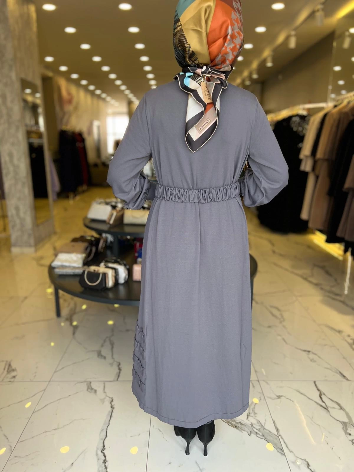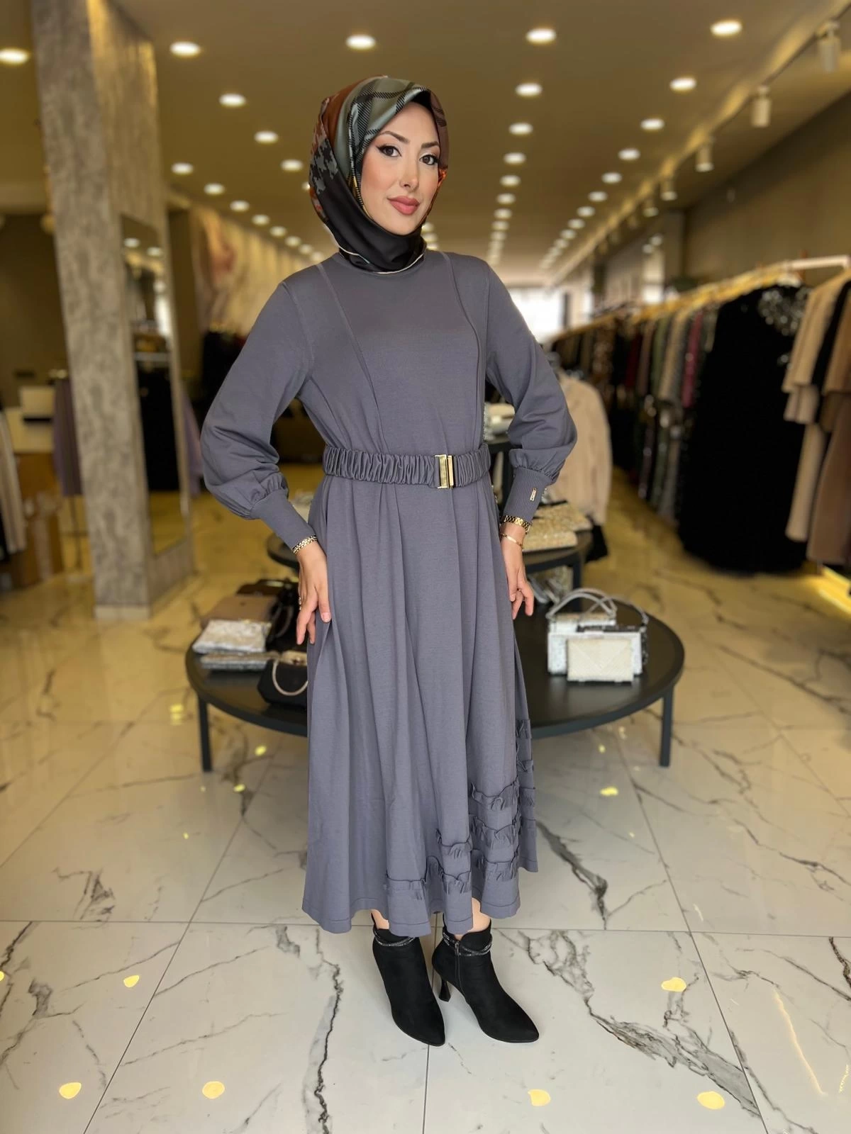 NİLİWİ-ETEK UCU FIRFIRLI ELBİSE ANTRASİT