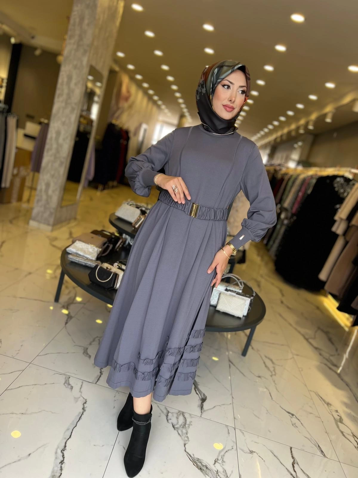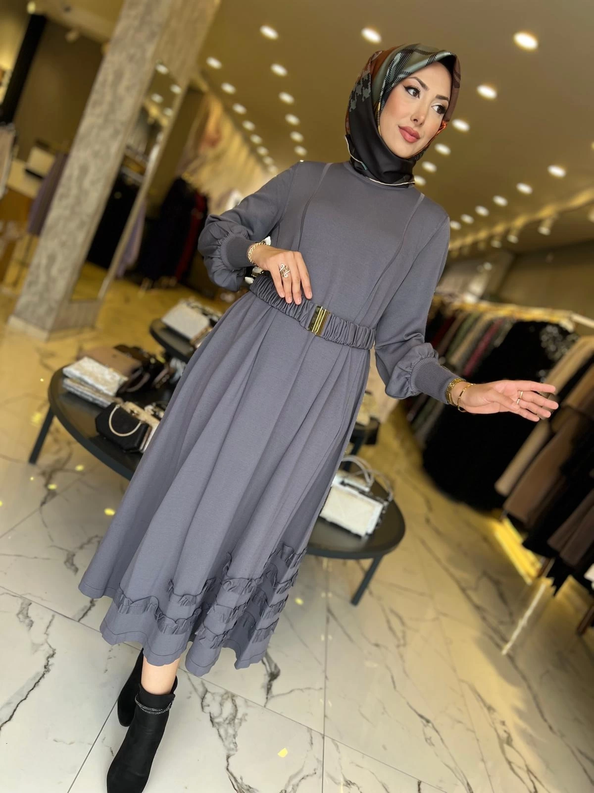NİLİWİ-ETEK UCU FIRFIRLI ELBİSE ANTRASİT ile Merihce Luxury'nin zarafet ve kalite anlayışını keşfedin. Koleksiyonumuzun bu seçkin parçası, stilinize lüks bir dokunuş katmak için özenle tasarlandı.