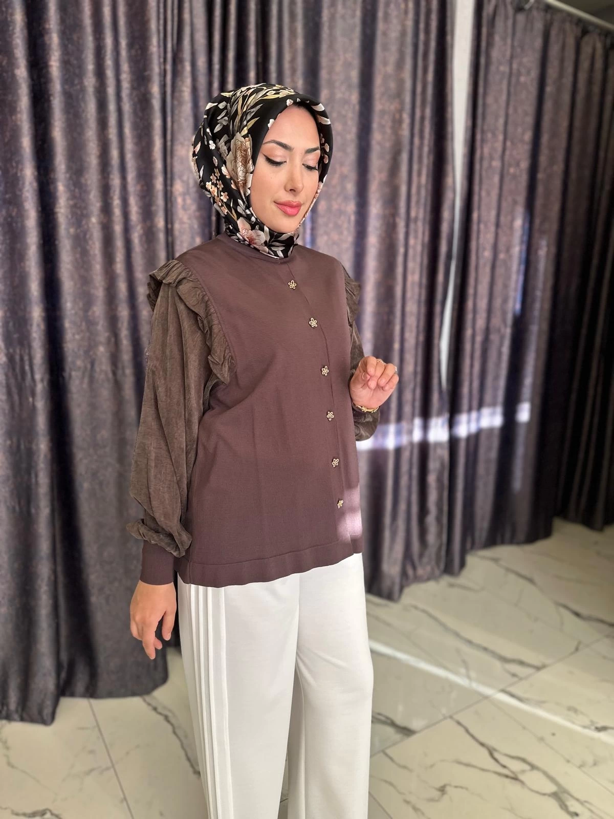 Merihce Luxury kalitesini her detayda hissedeceğiniz NİLİWİ-KARE KESİMLİ FIRFIRLI TUNİK KAHVE, gardırobunuzun vazgeçilmezlerinden biri olmaya aday.