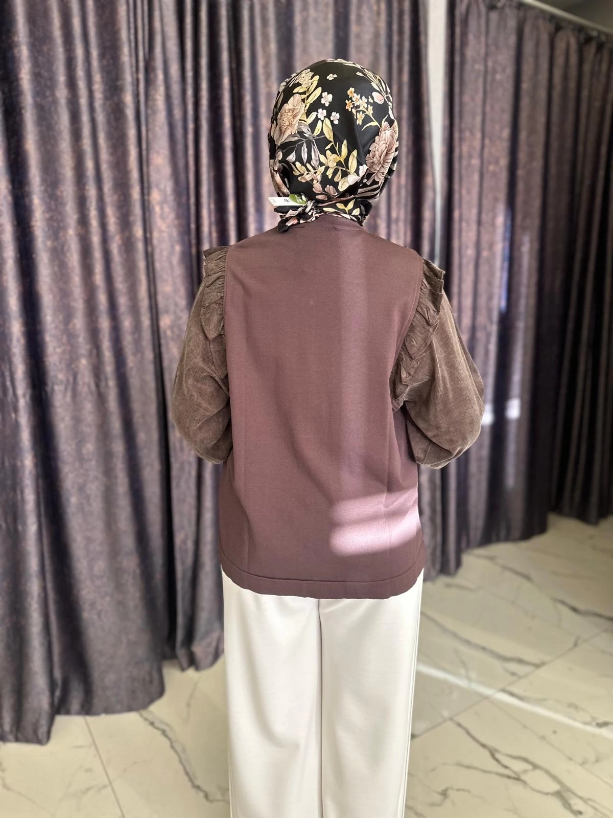 NİLİWİ-KARE KESİMLİ FIRFIRLI TUNİK KAHVE