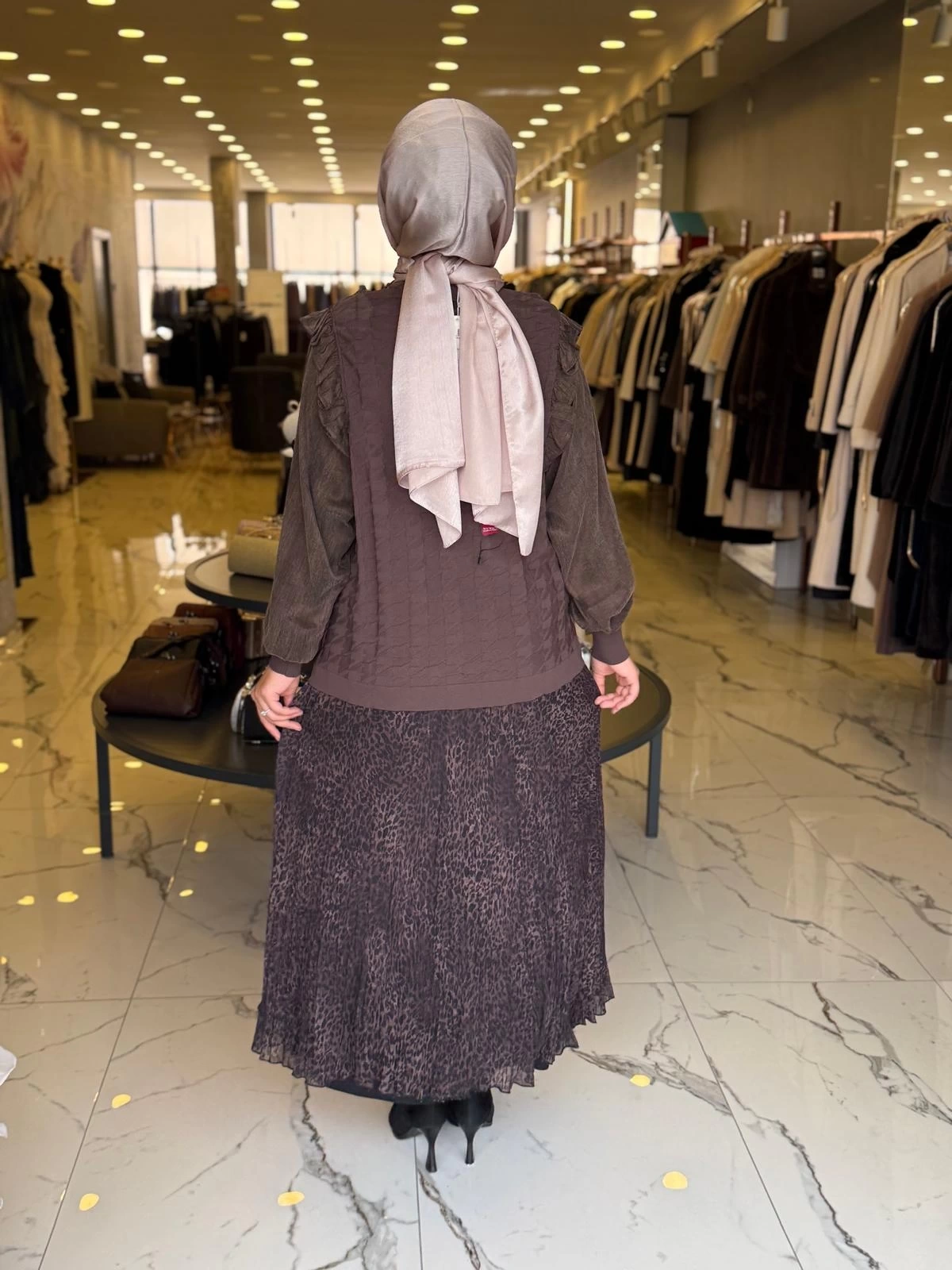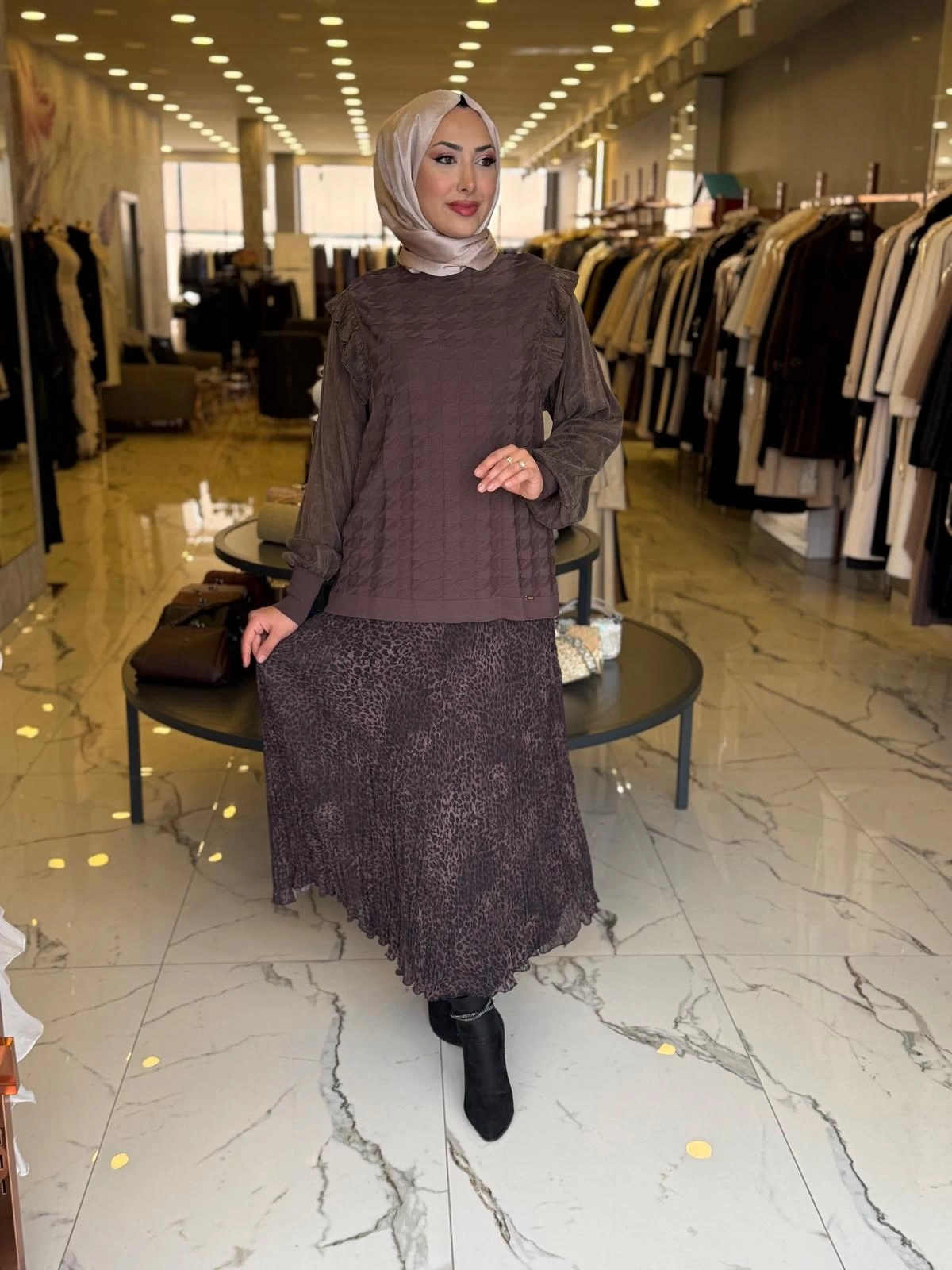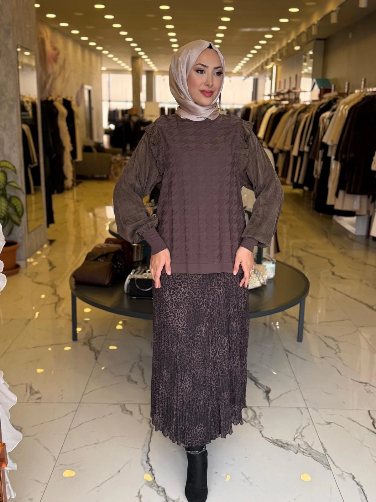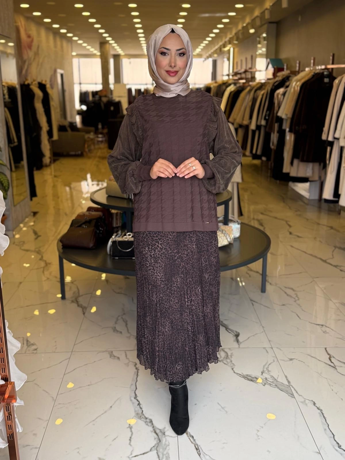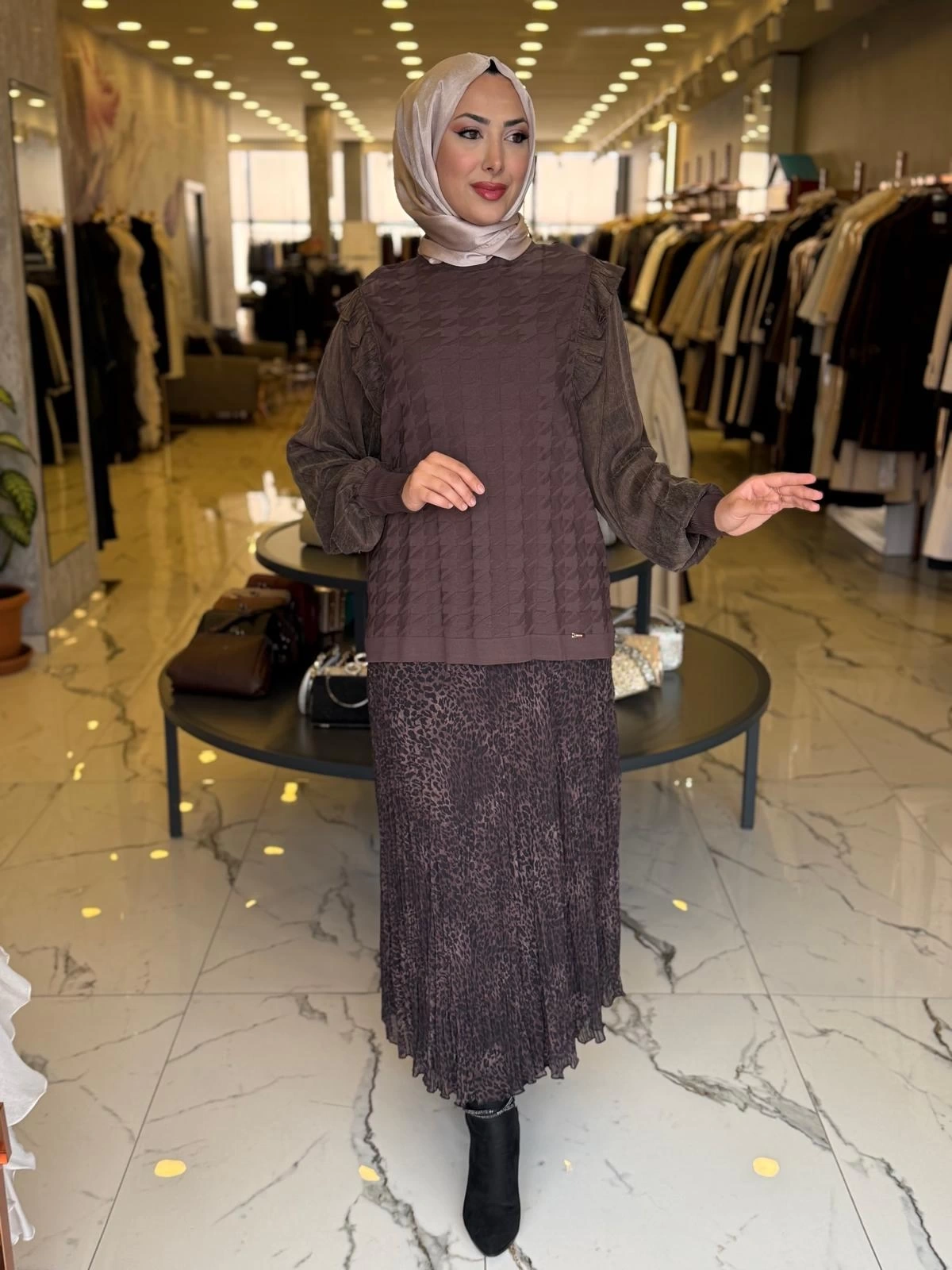 NİLİWİ-KOL EVİ KARE KESİMLİ FIRFIRLI TUNİK KAHVE