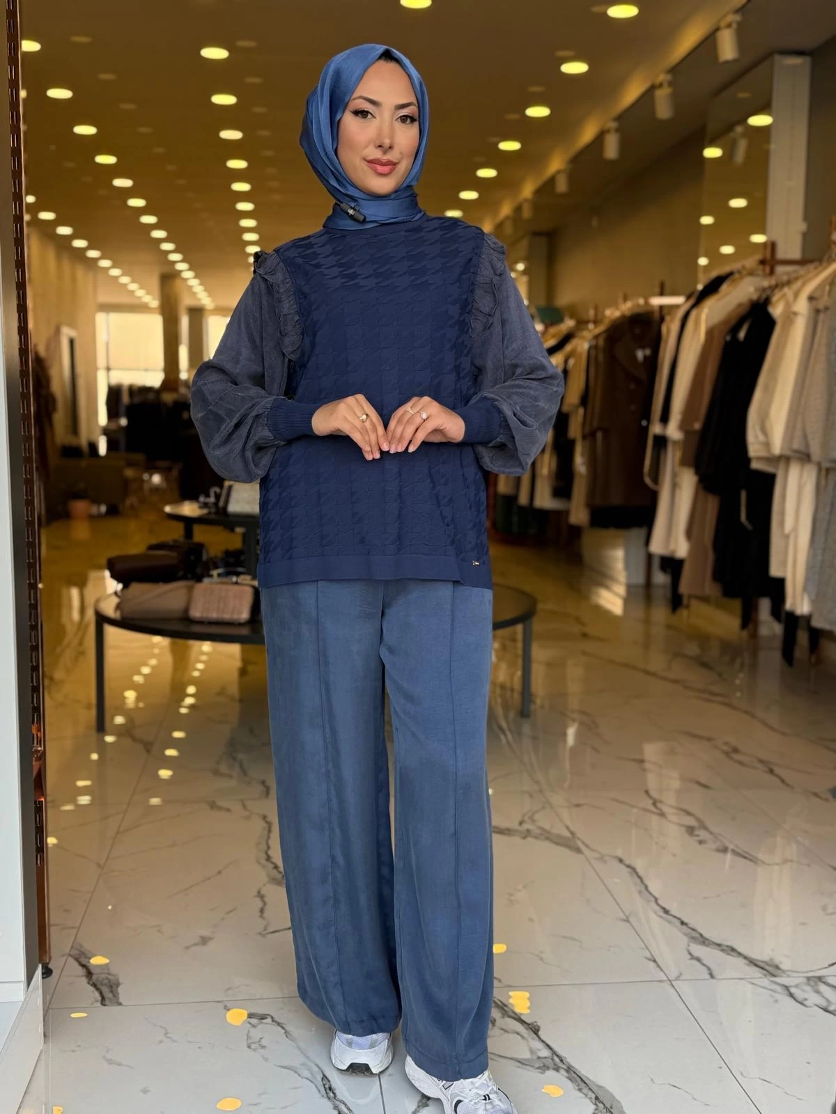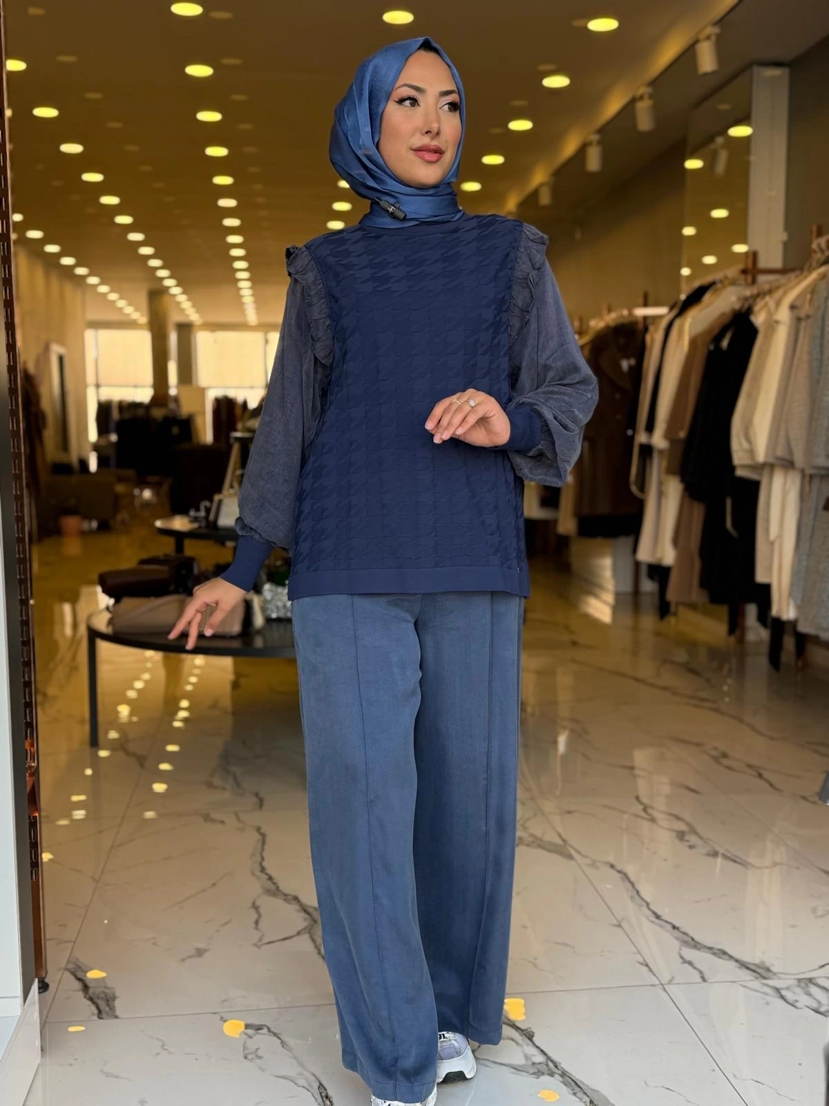 Merihce Luxury kalitesini her detayda hissedeceğiniz NİLİWİ-KOL EVİ KARE KESİMLİ FIRFIRLI TUNİK LACİVERT, gardırobunuzun vazgeçilmezlerinden biri olmaya aday.