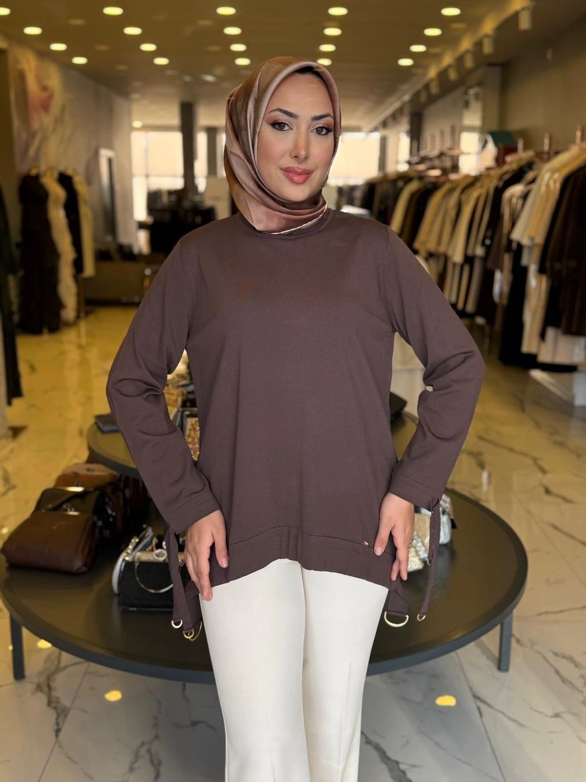 Merihce Luxury kalitesini her detayda hissedeceğiniz NİLİWİ-ÖN ETEĞİ BÜZGÜLÜ TUNİK KAHVE, gardırobunuzun vazgeçilmezlerinden biri olmaya aday.