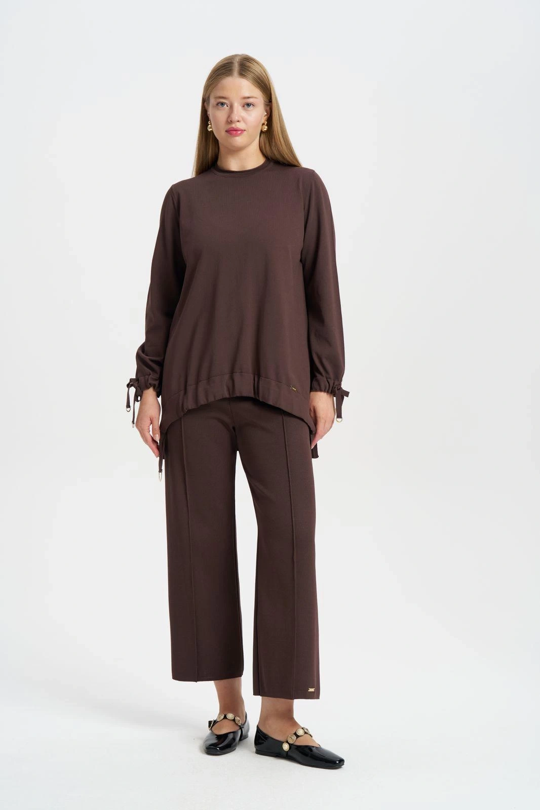 NİLİWİ-ÖN ETEĞİ BÜZGÜLÜ TUNİK KAHVE ile Merihce Luxury'nin zarafet ve kalite anlayışını keşfedin. Koleksiyonumuzun bu seçkin parçası, stilinize lüks bir dokunuş katmak için özenle tasarlandı.