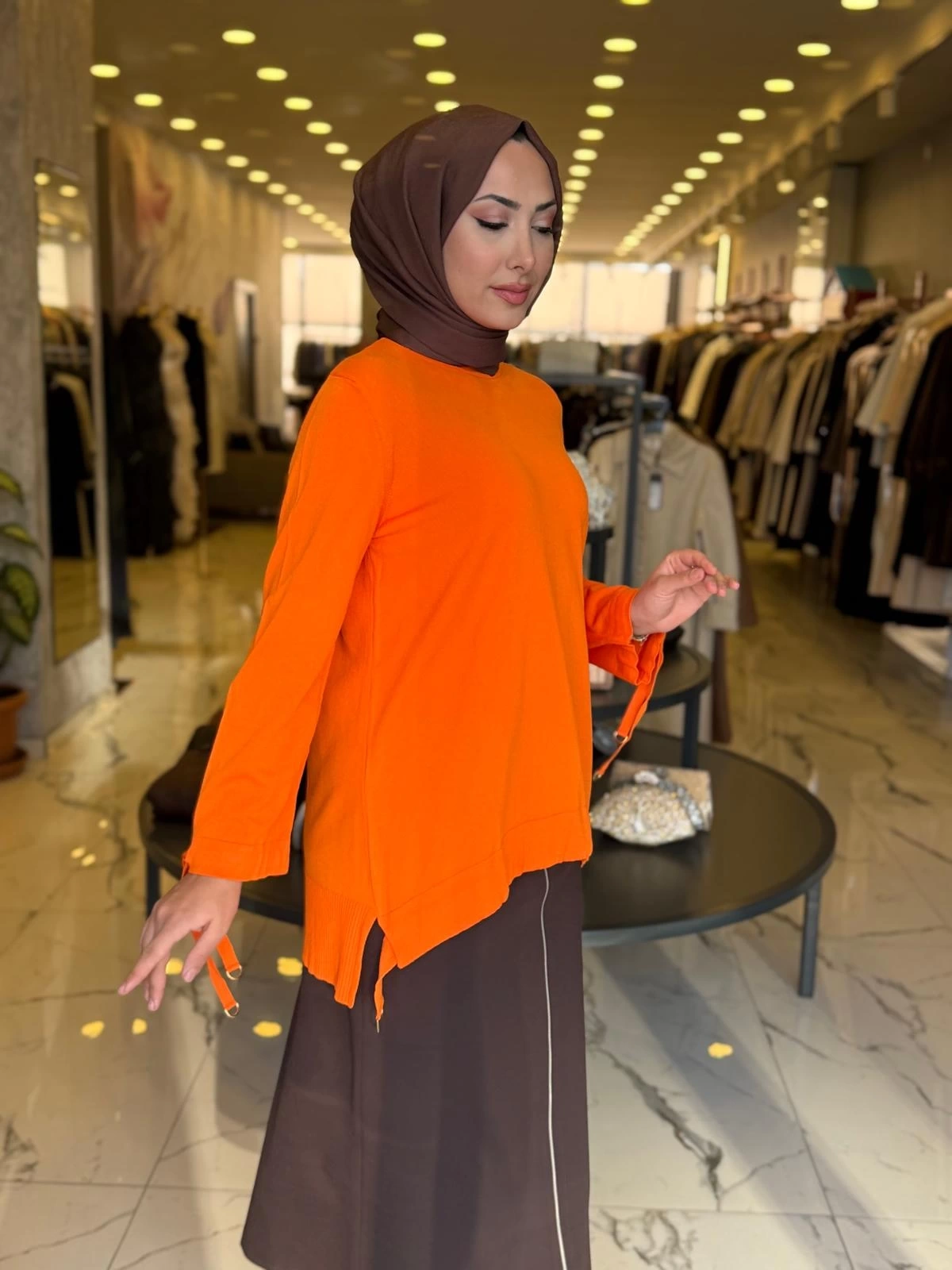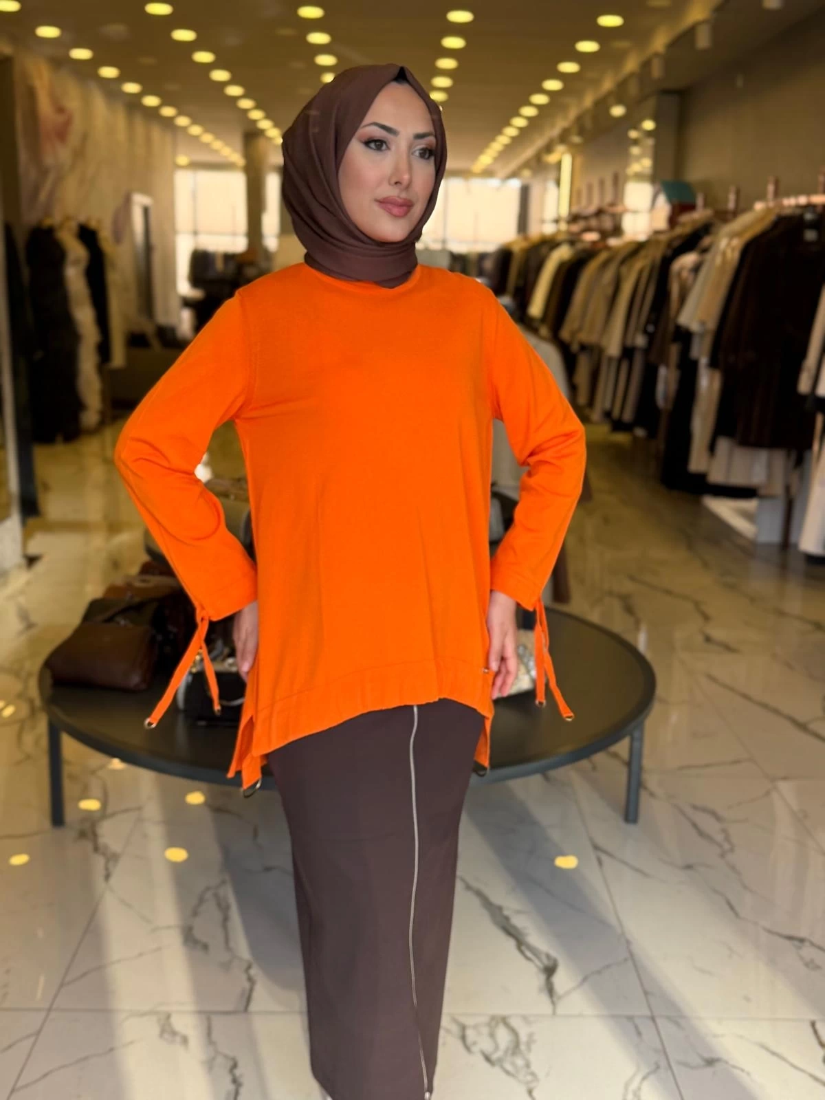 NİLİWİ-ÖN ETEĞİ BÜZGÜLÜ TUNİK TURUNCU