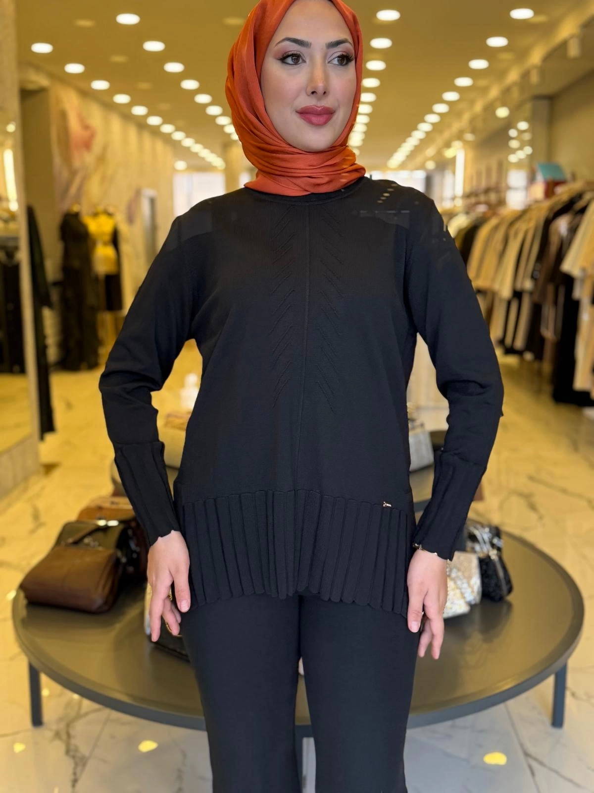 NİLİWİ-ÖNÜ VEREV YÜRÜTMELİ TUNİK SİYAH ile Merihce Luxury'nin zarafet ve kalite anlayışını keşfedin. Koleksiyonumuzun bu seçkin parçası, stilinize lüks bir dokunuş katmak için özenle tasarlandı.