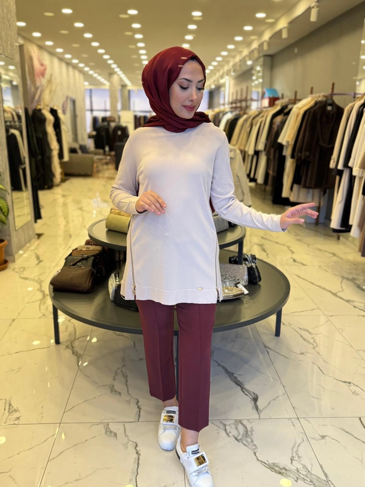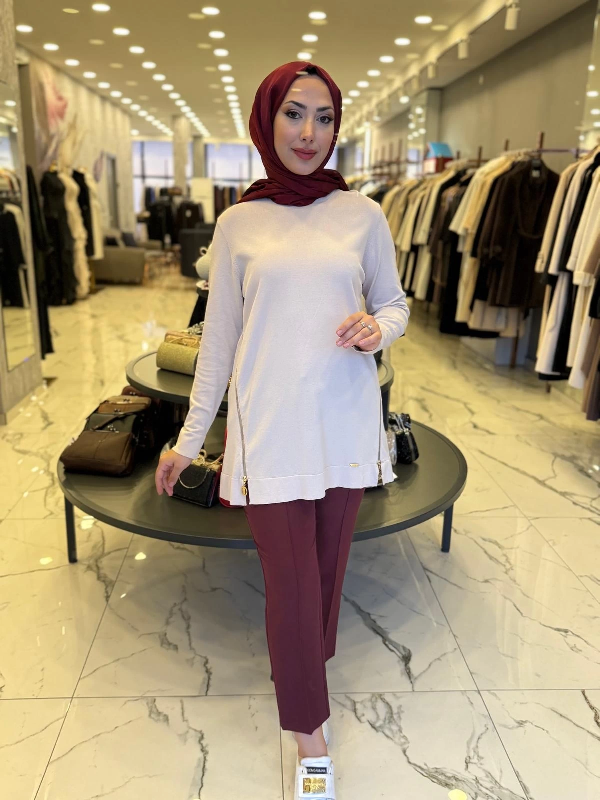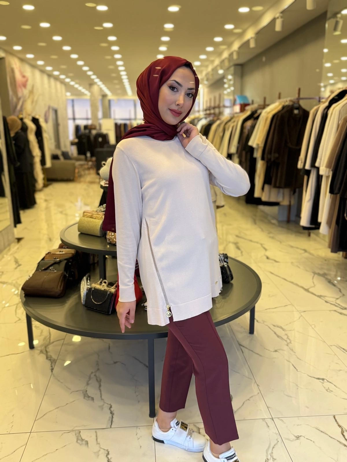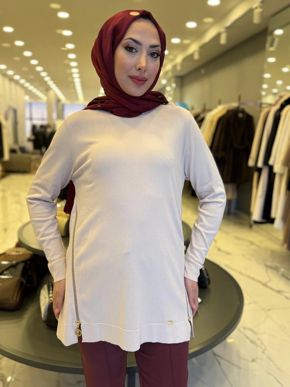 Merihce Luxury kalitesini her detayda hissedeceğiniz NİLİWİ-YANLARI FERMUARLI TUNİK BEJ, gardırobunuzun vazgeçilmezlerinden biri olmaya aday.