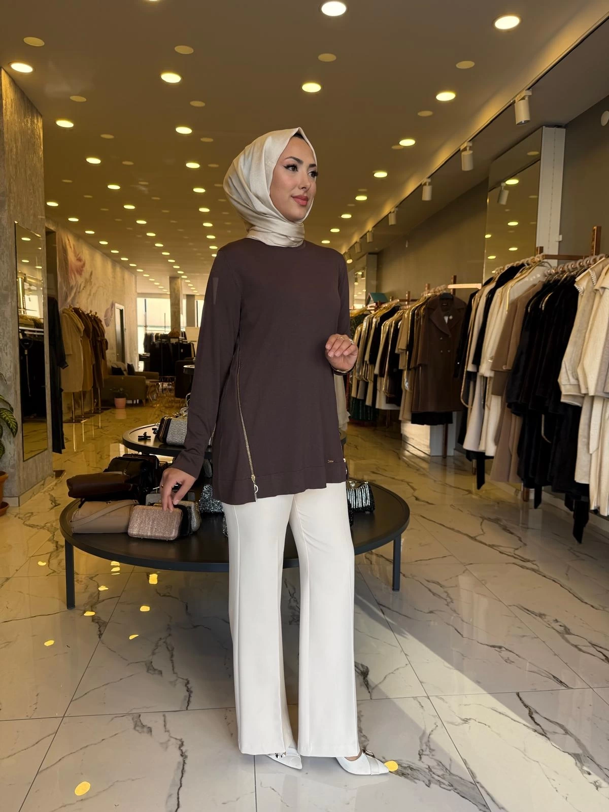 Merihce Luxury kalitesini her detayda hissedeceğiniz NİLİWİ-YANLARI FERMUARLI TUNİK KAHVE, gardırobunuzun vazgeçilmezlerinden biri olmaya aday.
