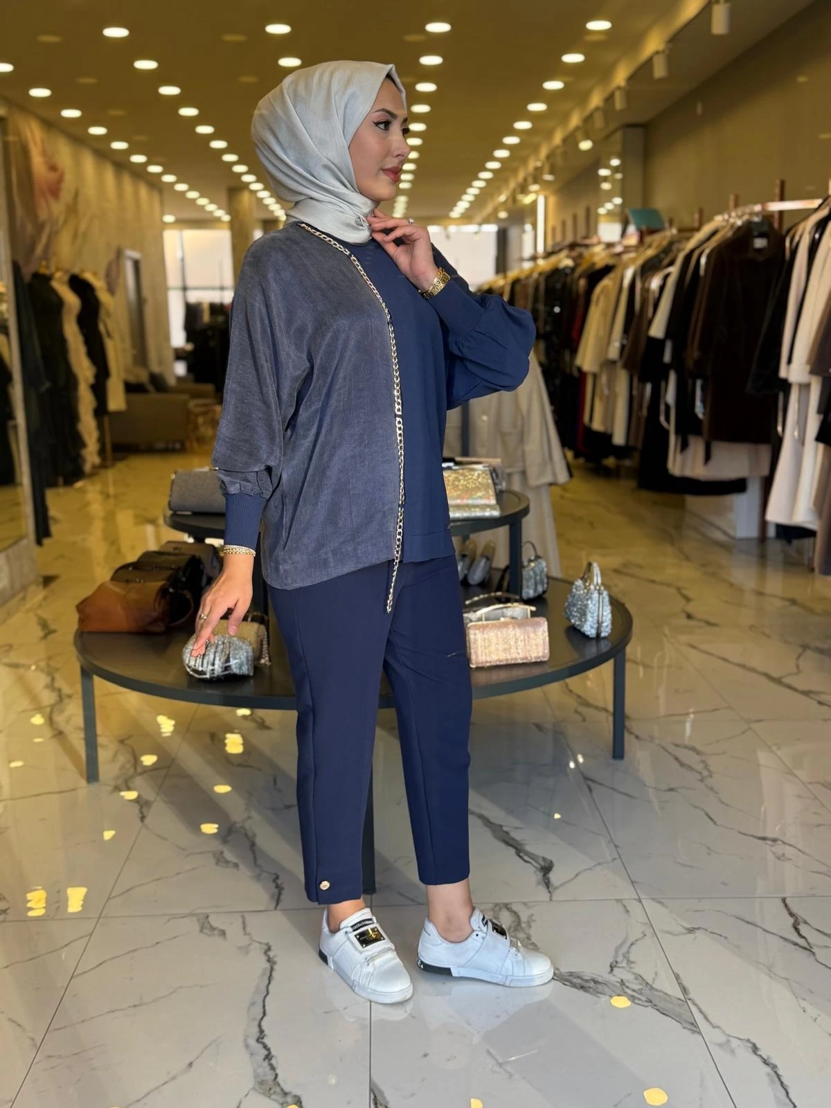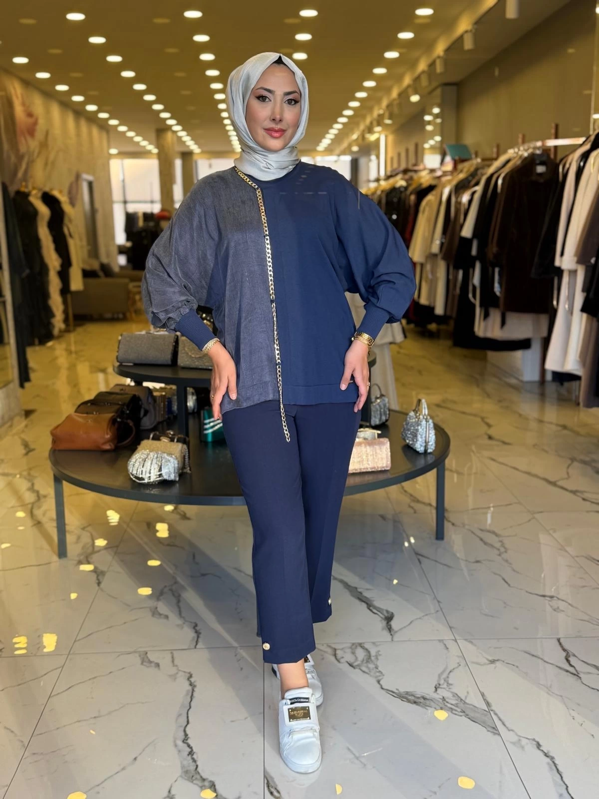 NİLİWİ-YARISI KUMAŞ ZİNCİRLİ YARASA BLUZ LACİVERT ile Merihce Luxury'nin zarafet ve kalite anlayışını keşfedin. Koleksiyonumuzun bu seçkin parçası, stilinize lüks bir dokunuş katmak için özenle tasarlandı.