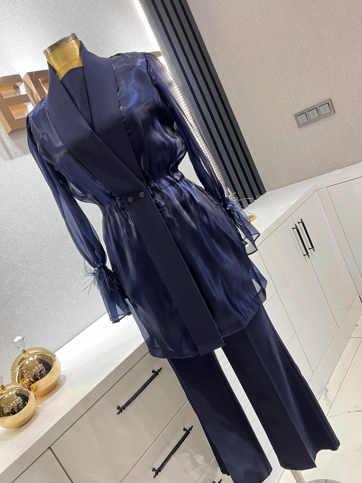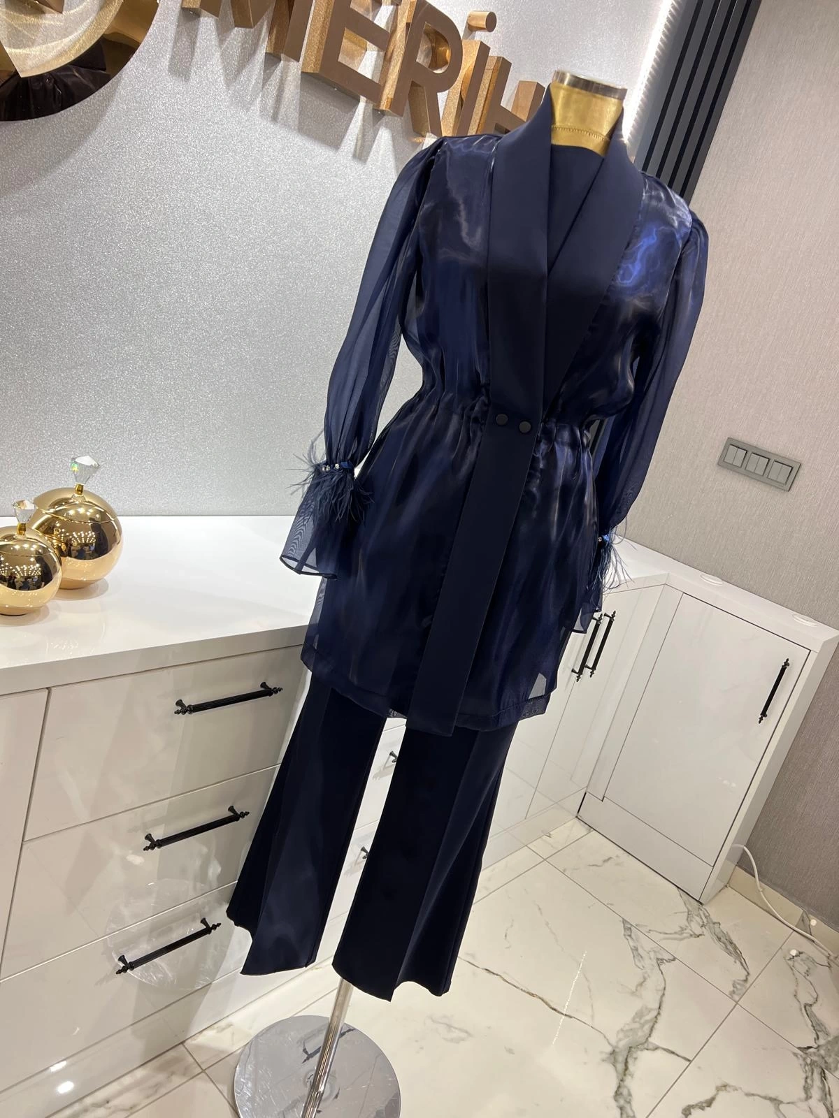 Merihce Luxury kalitesini her detayda hissedeceğiniz PERİ-ORGANİZE CEKETLİ TAKIM LACİVERT, gardırobunuzun vazgeçilmezlerinden biri olmaya aday.