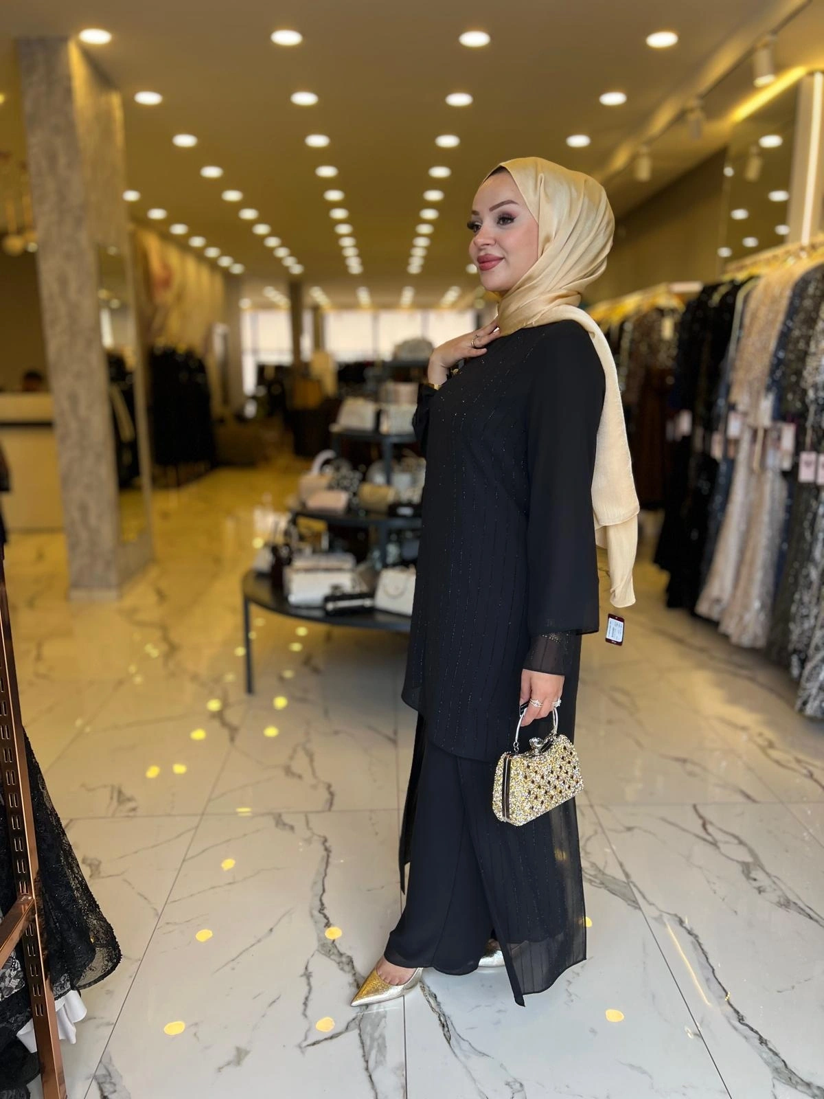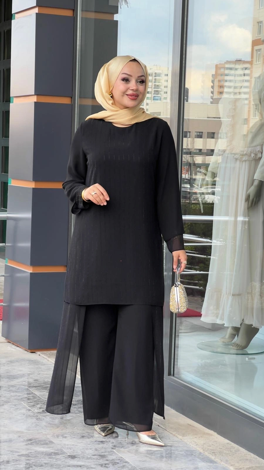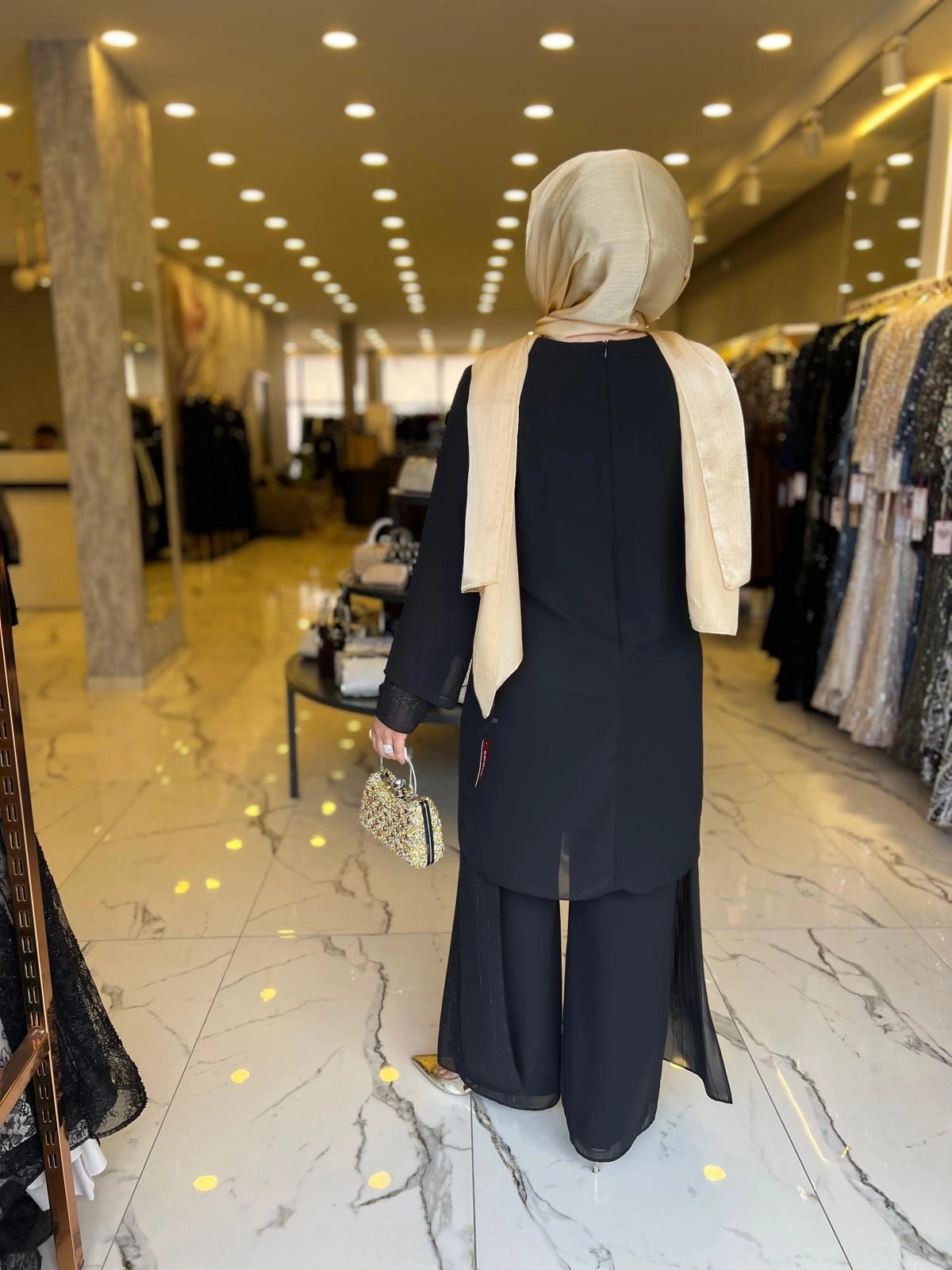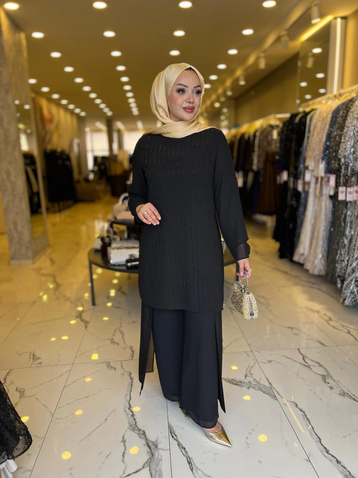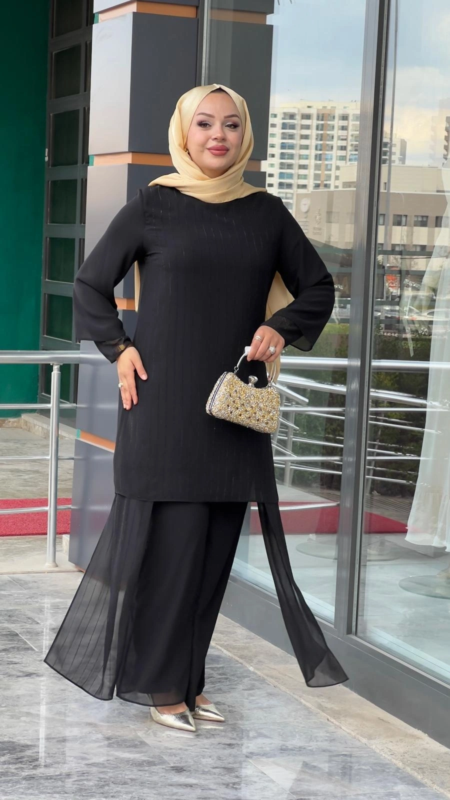 Merihce Luxury kalitesini her detayda hissedeceğiniz PERİ-ŞİFON TAŞLI PATOLONLU TAKIM SİYAH, gardırobunuzun vazgeçilmezlerinden biri olmaya aday.