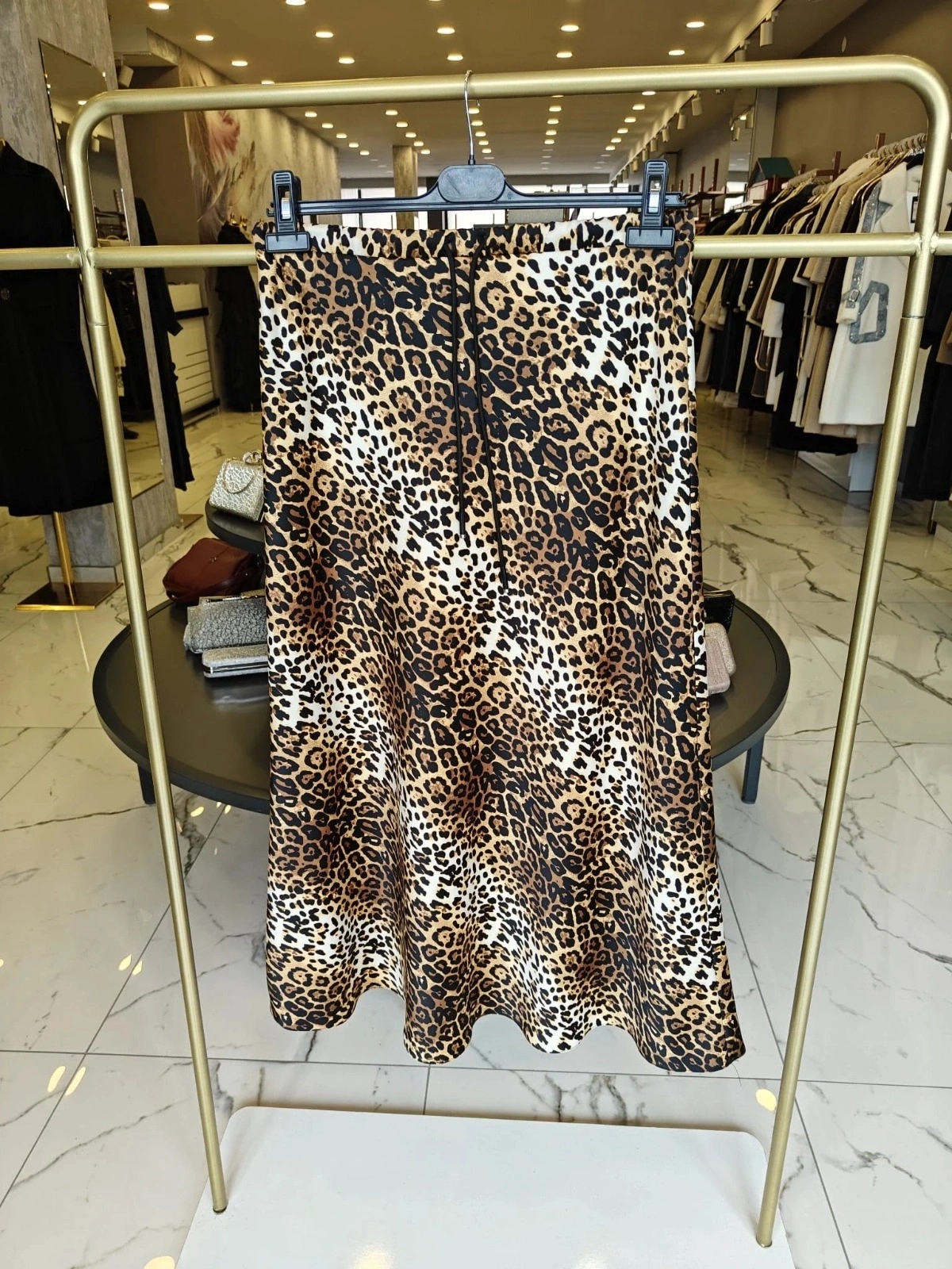 Merihce Luxury kalitesini her detayda hissedeceğiniz SENTEZ-LEOPAR SATEN KLOŞ ETEK CAMEL, gardırobunuzun vazgeçilmezlerinden biri olmaya aday.