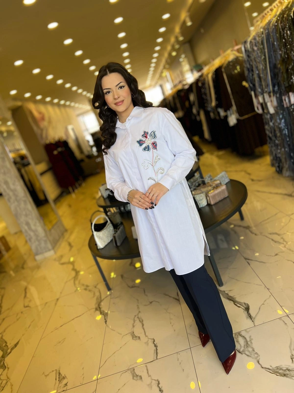 SOLİS-ÇİÇEK ÜZERİ TAŞLI TUNİK BEYAZ ile Merihce Luxury'nin zarafet ve kalite anlayışını keşfedin. Koleksiyonumuzun bu seçkin parçası, stilinize lüks bir dokunuş katmak için özenle tasarlandı.