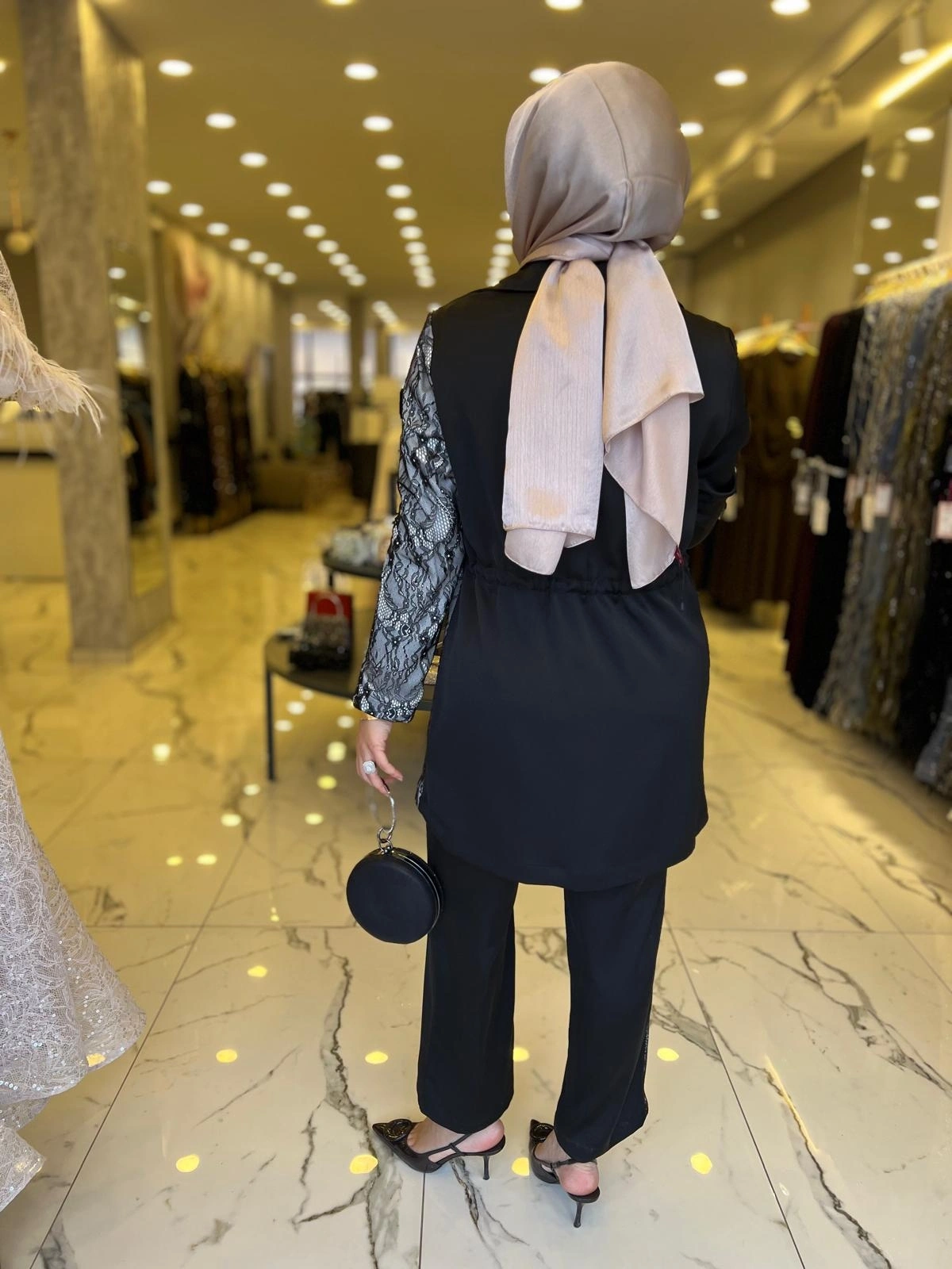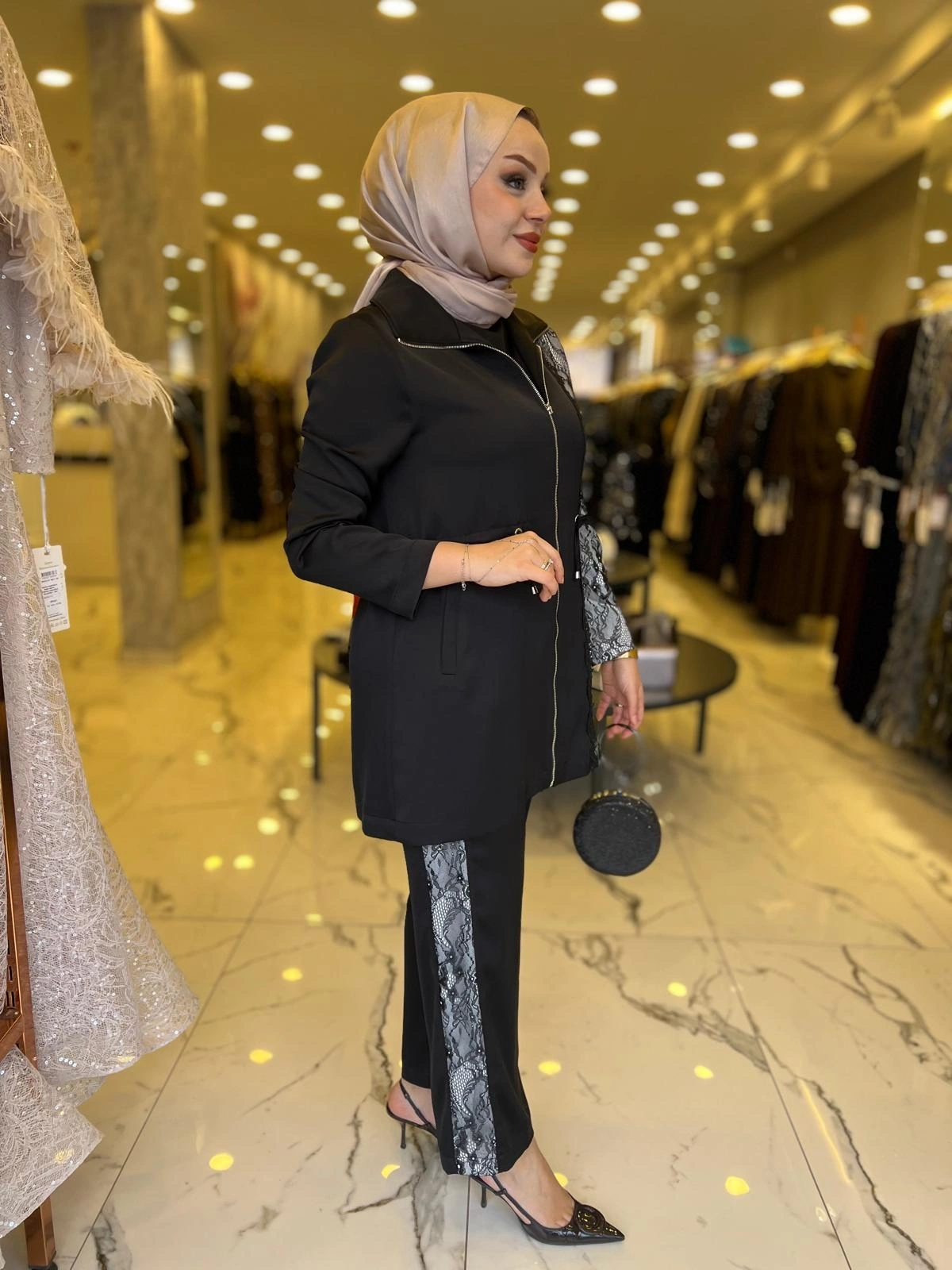 SOLİS-DANTELLİ PANTOLONLU TAKIM SİYAH