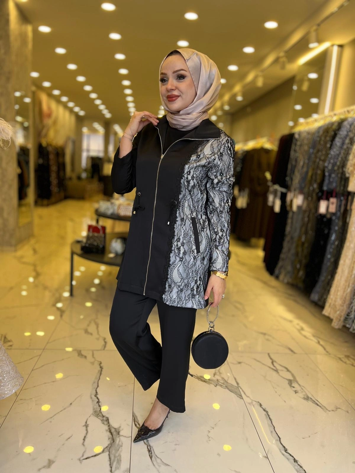 Merihce Luxury kalitesini her detayda hissedeceğiniz SOLİS-DANTELLİ PANTOLONLU TAKIM SİYAH, gardırobunuzun vazgeçilmezlerinden biri olmaya aday.