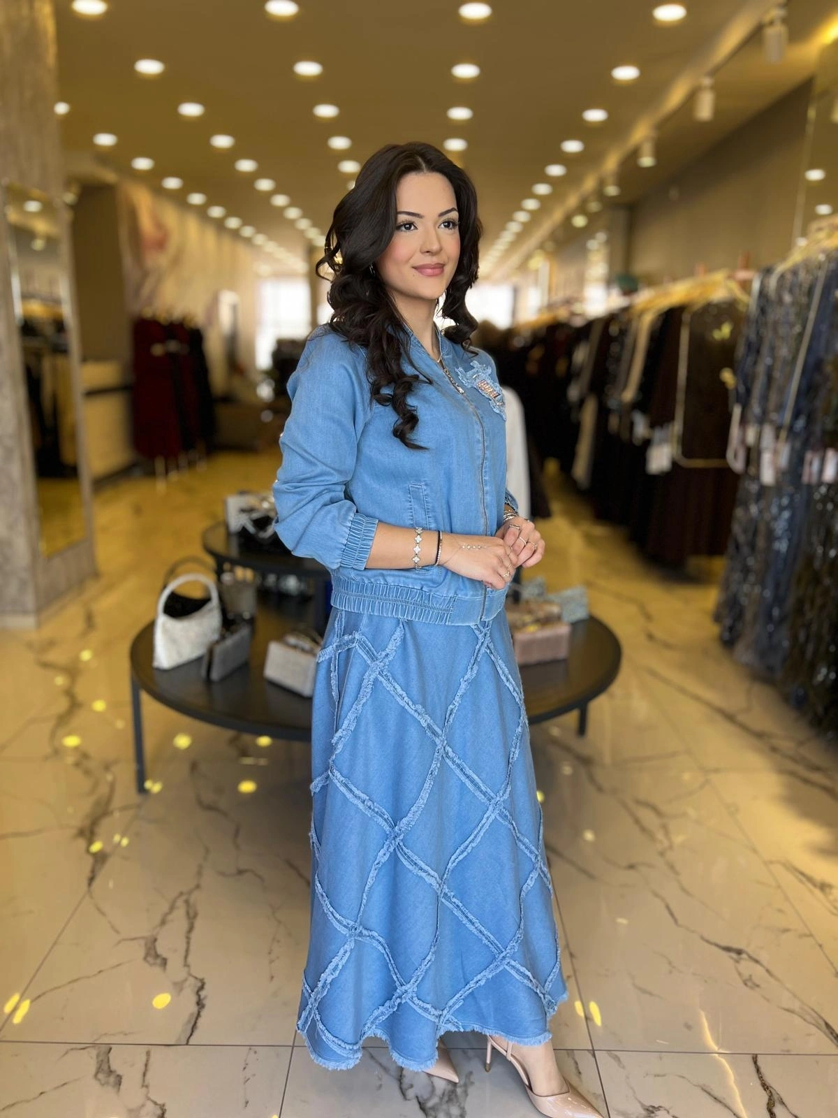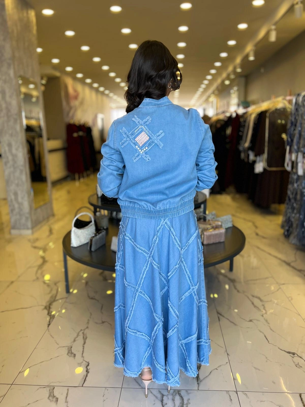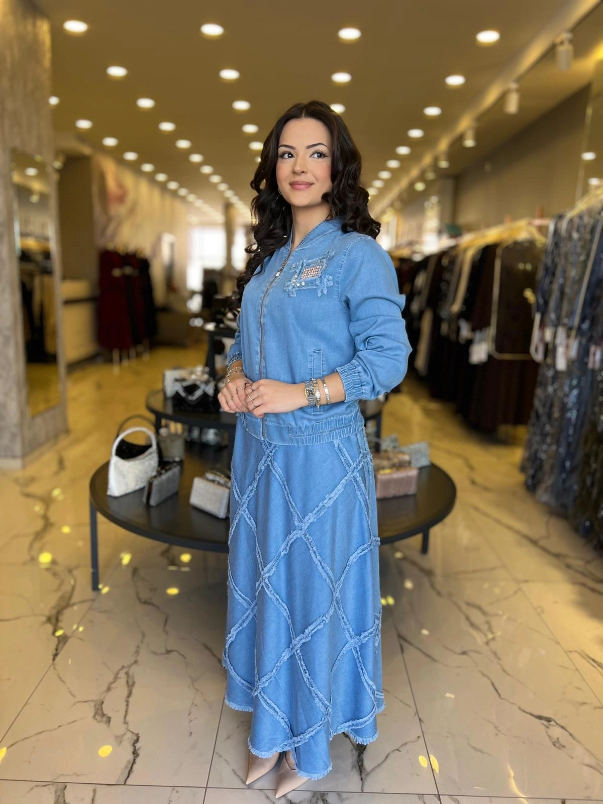 Merihce Luxury kalitesini her detayda hissedeceğiniz SOLİS-ETEĞİ DESENLİ KOT TAKIM AÇIK MAVİ, gardırobunuzun vazgeçilmezlerinden biri olmaya aday.