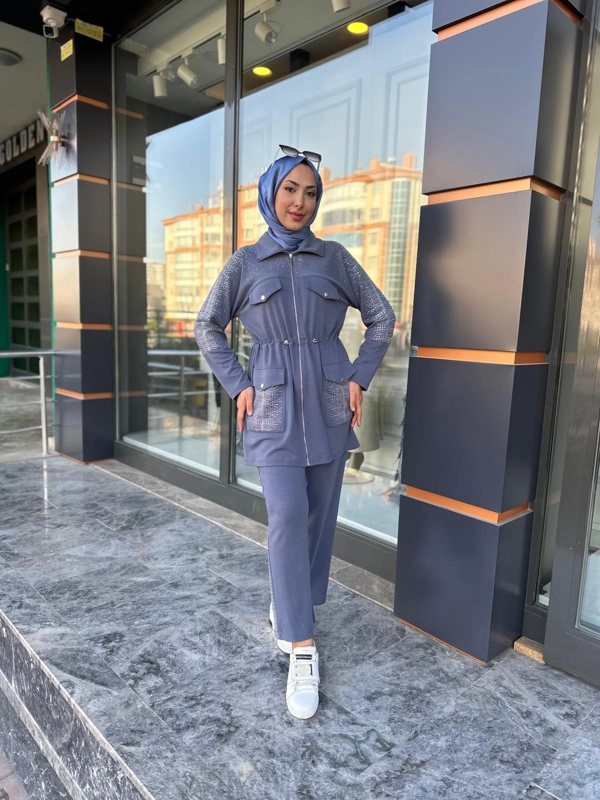Merihce Luxury kalitesini her detayda hissedeceğiniz SOLİS-İKİLİ TAŞLI TAKIM İNDİGO, gardırobunuzun vazgeçilmezlerinden biri olmaya aday.
