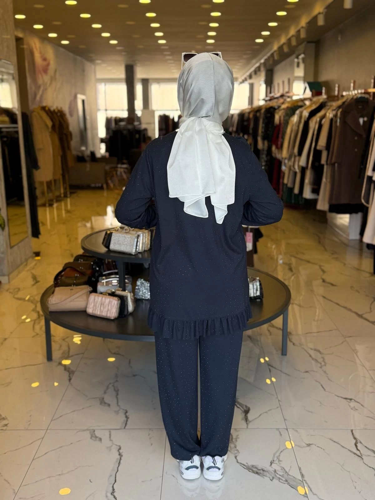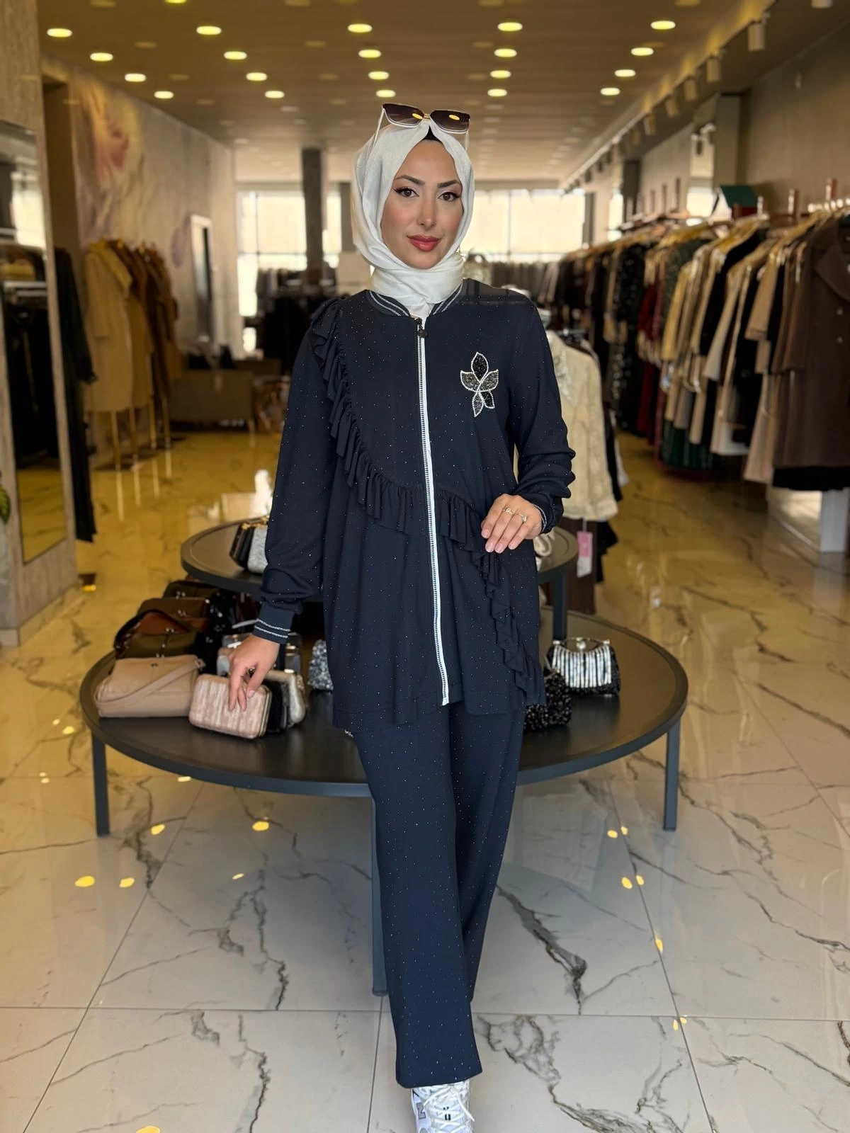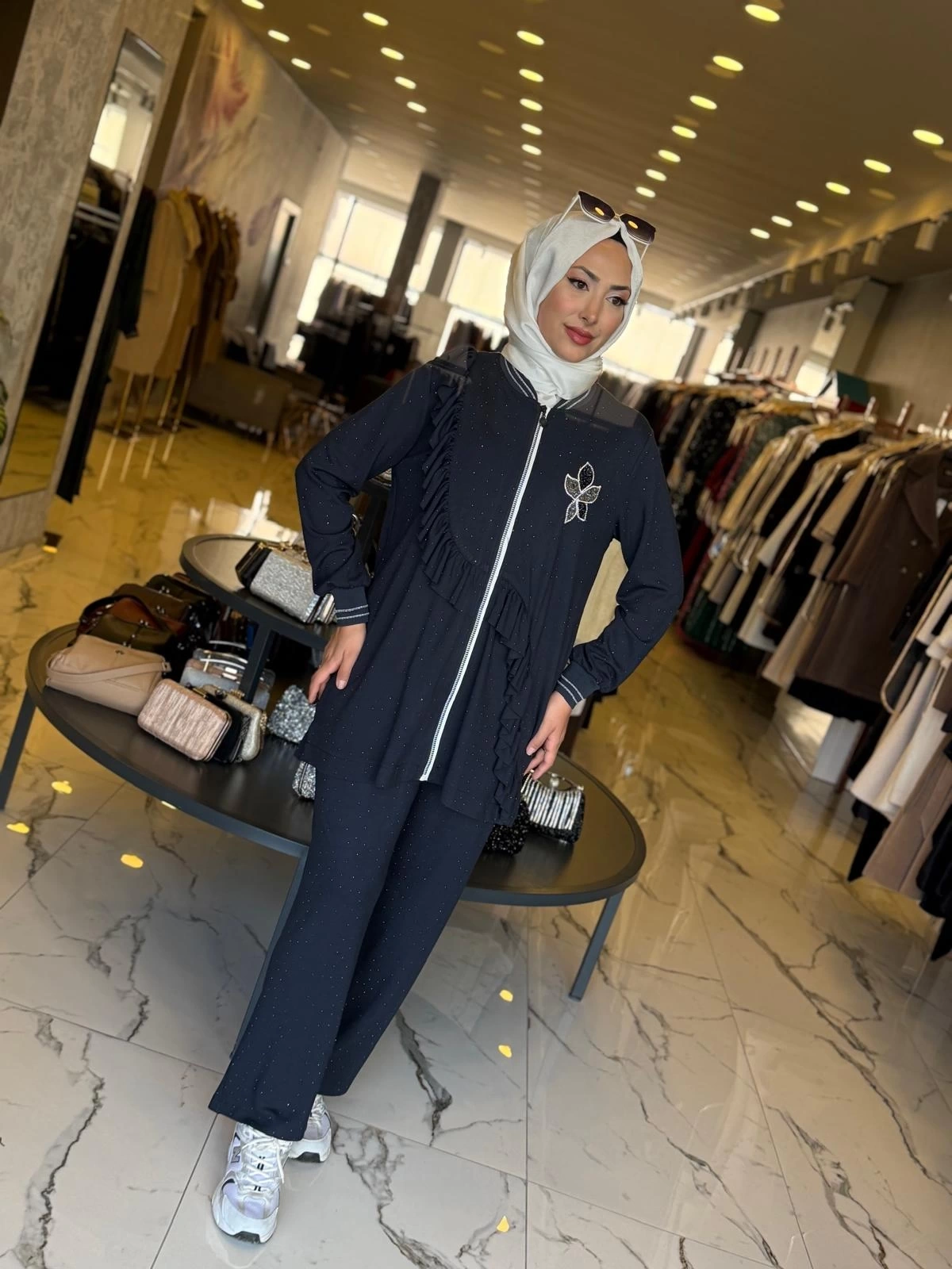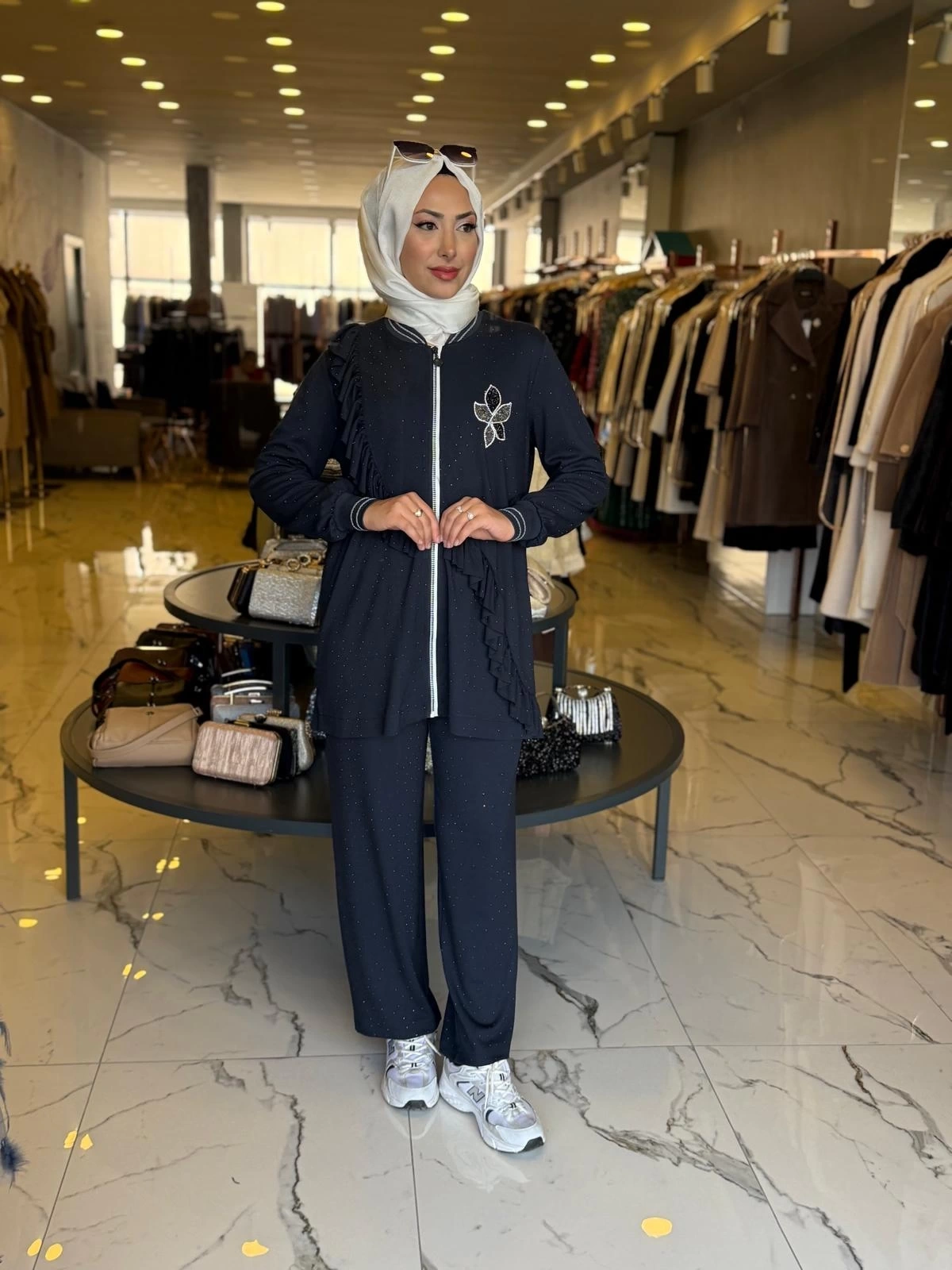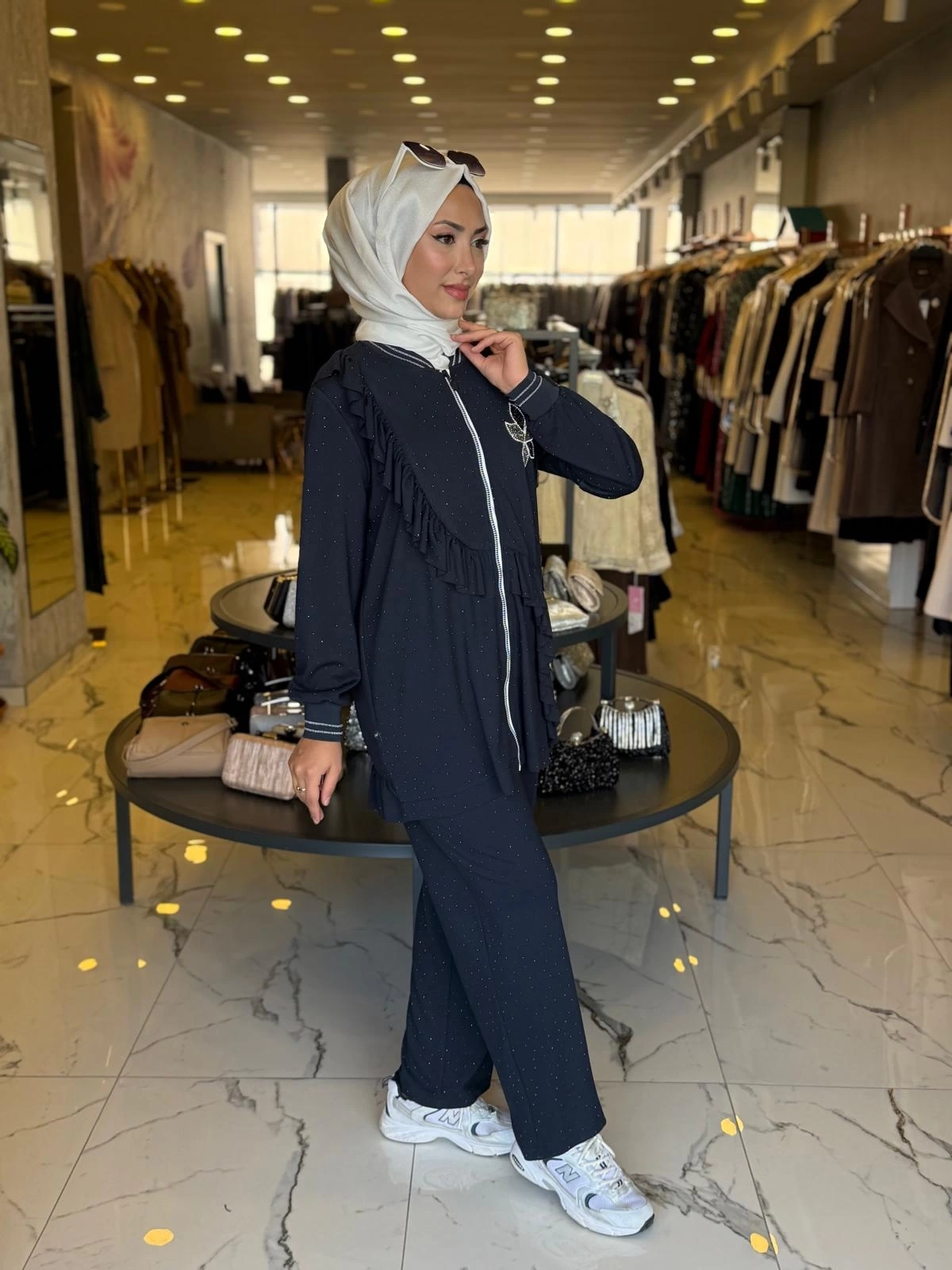 Merihce Luxury kalitesini her detayda hissedeceğiniz SOLİS-TAŞ İŞLEMELİ TAKIM LACİVERT, gardırobunuzun vazgeçilmezlerinden biri olmaya aday.