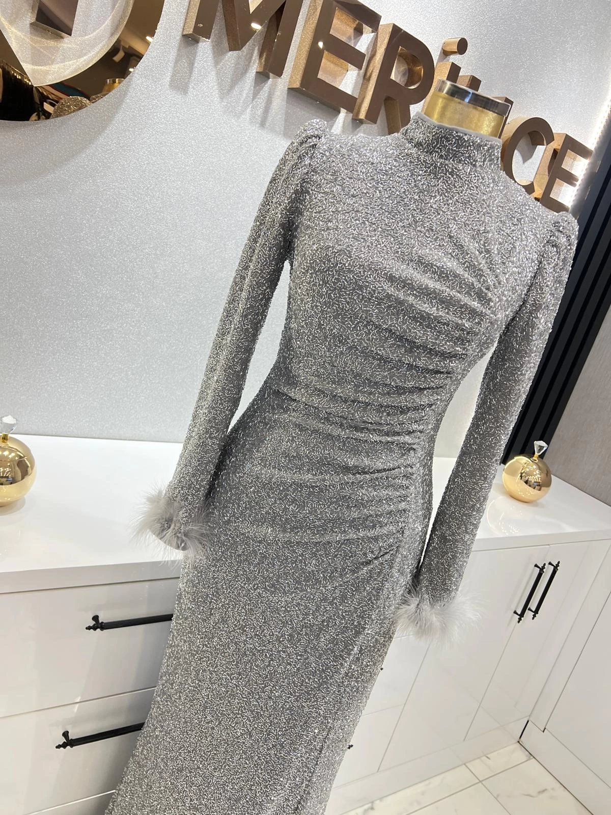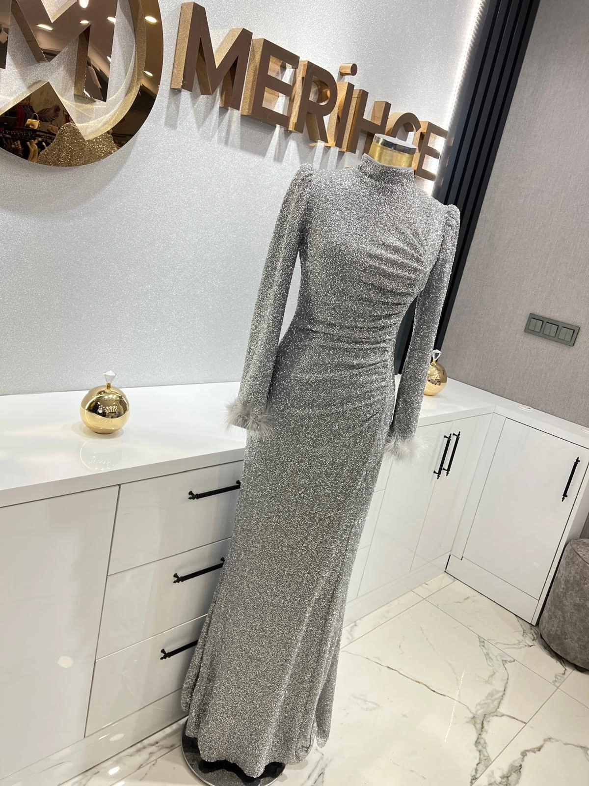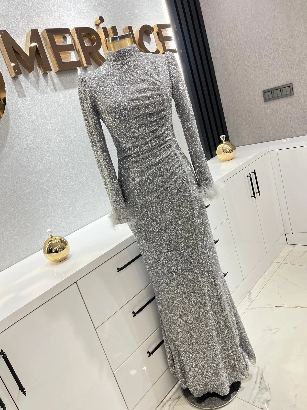 Merihce Luxury kalitesini her detayda hissedeceğiniz TUAY-PAYET ABİYE ELBİSE GRİ, gardırobunuzun vazgeçilmezlerinden biri olmaya aday.