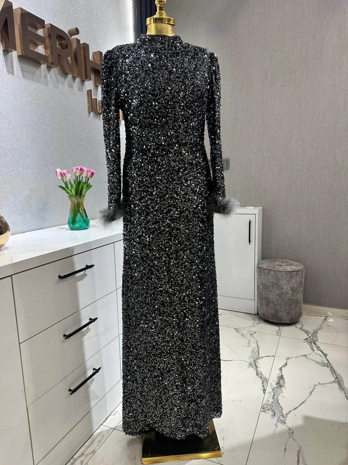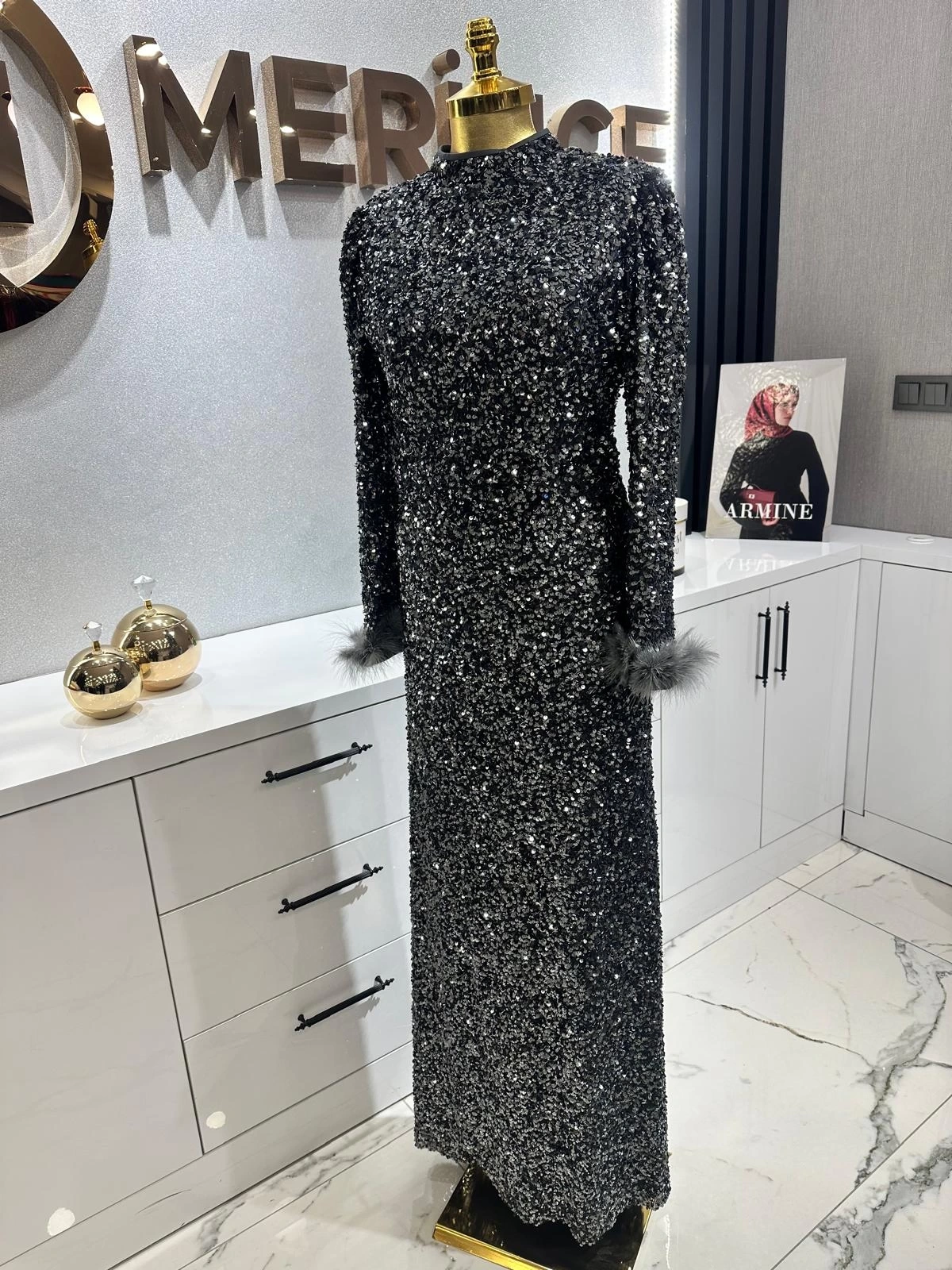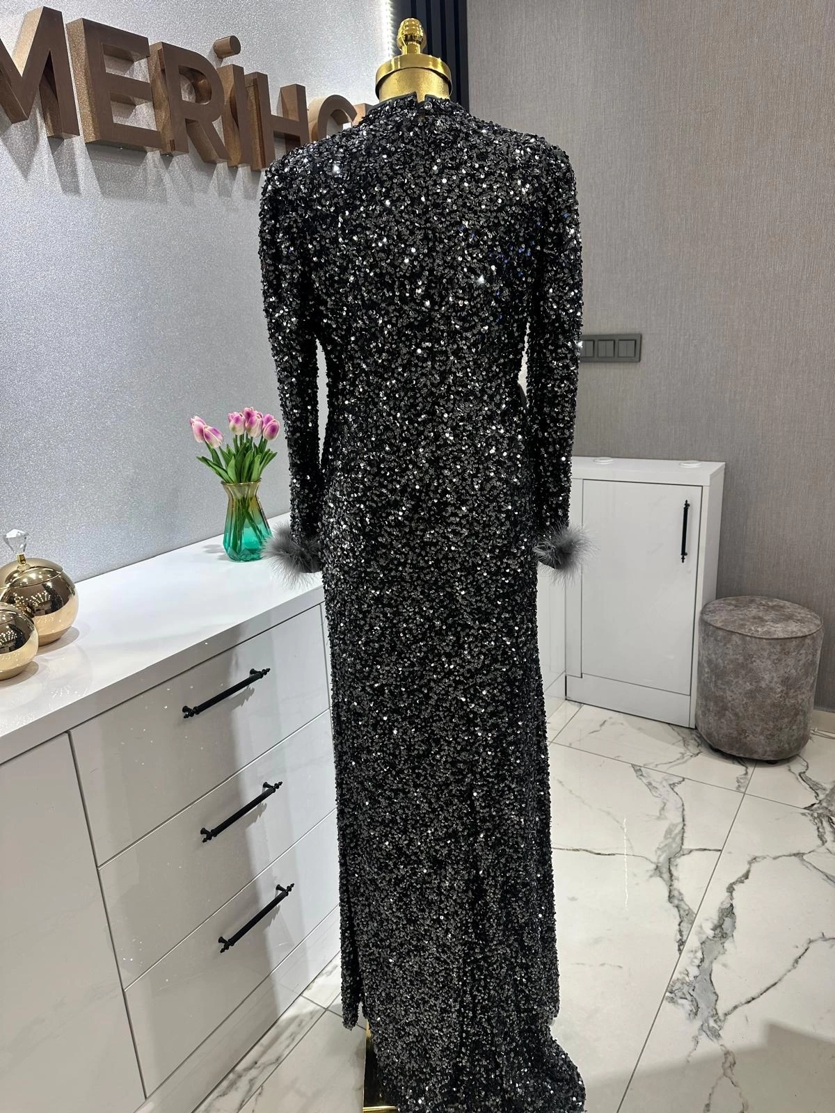 Merihce Luxury kalitesini her detayda hissedeceğiniz TUAY-PULPAYET ABİYE ELBİSE ANTRASİT, gardırobunuzun vazgeçilmezlerinden biri olmaya aday.
